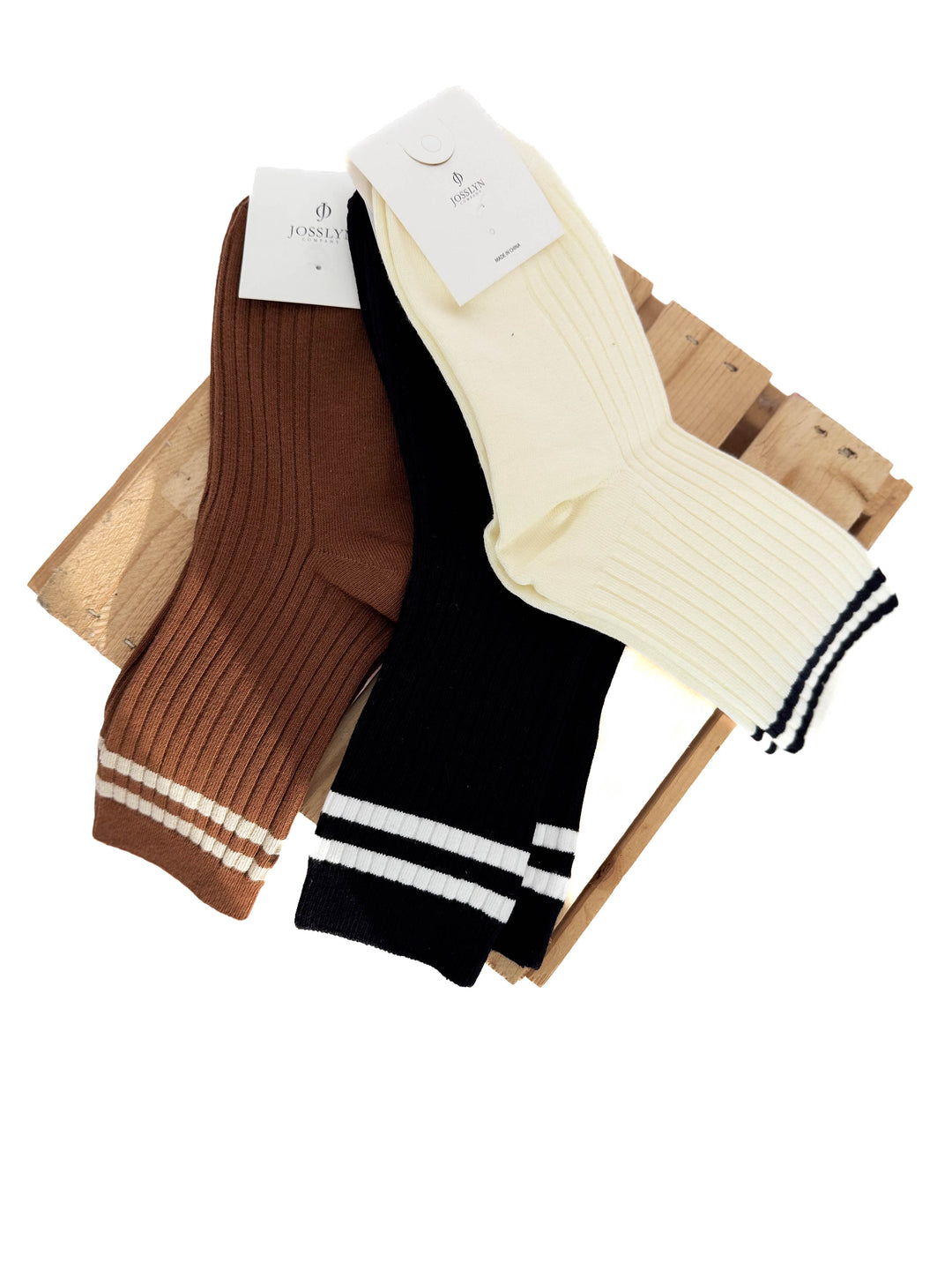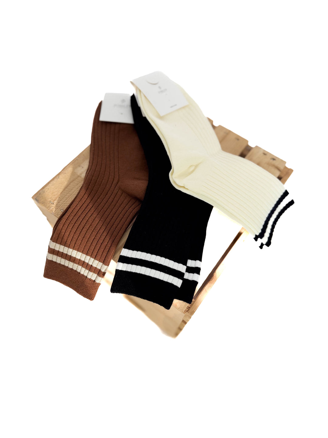 Women Stripe Half Crew Throwback Cotton Socks- BROWN