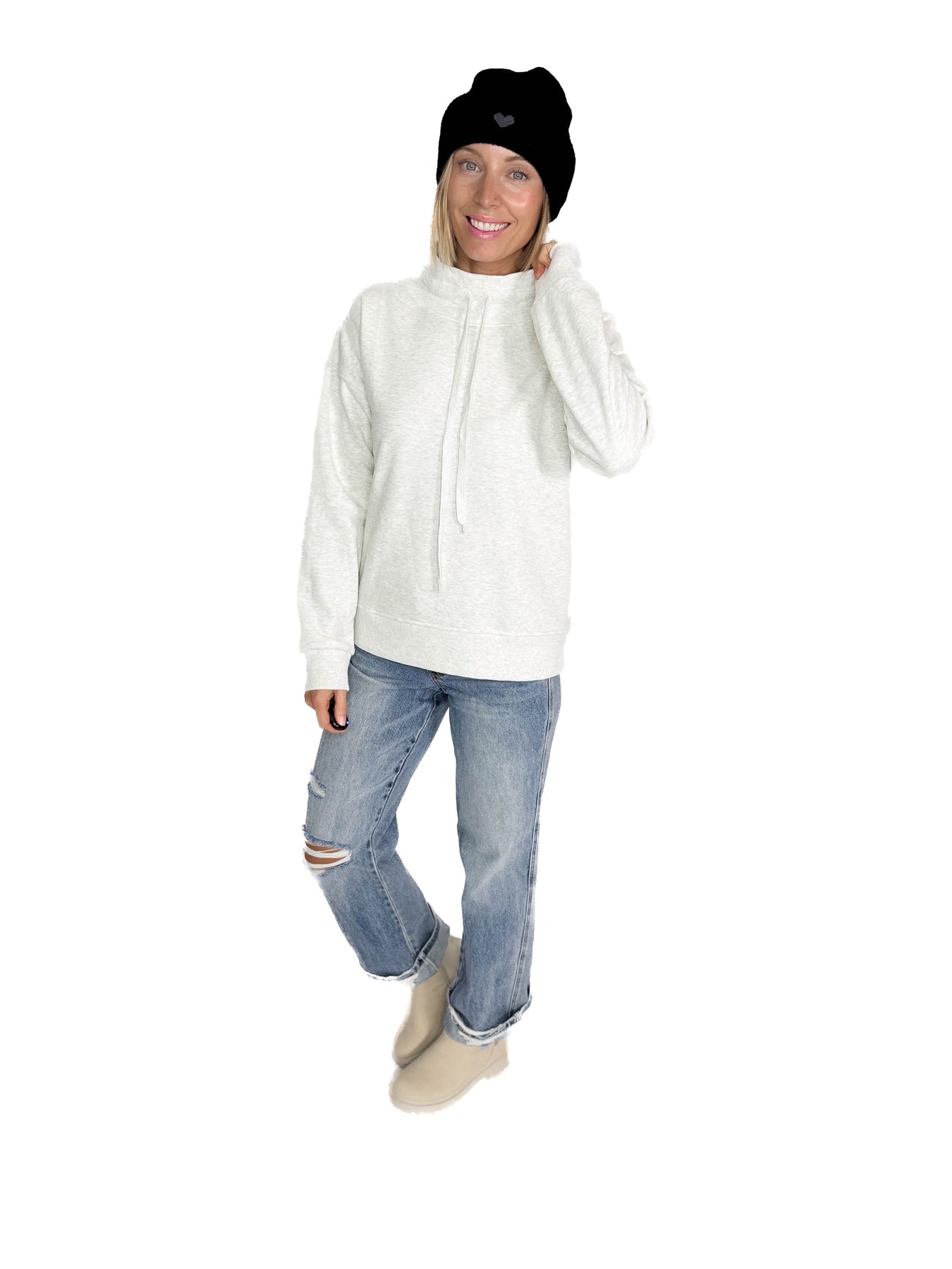 Jackie Mock Neck Sweatshirt- HEATHER GREY