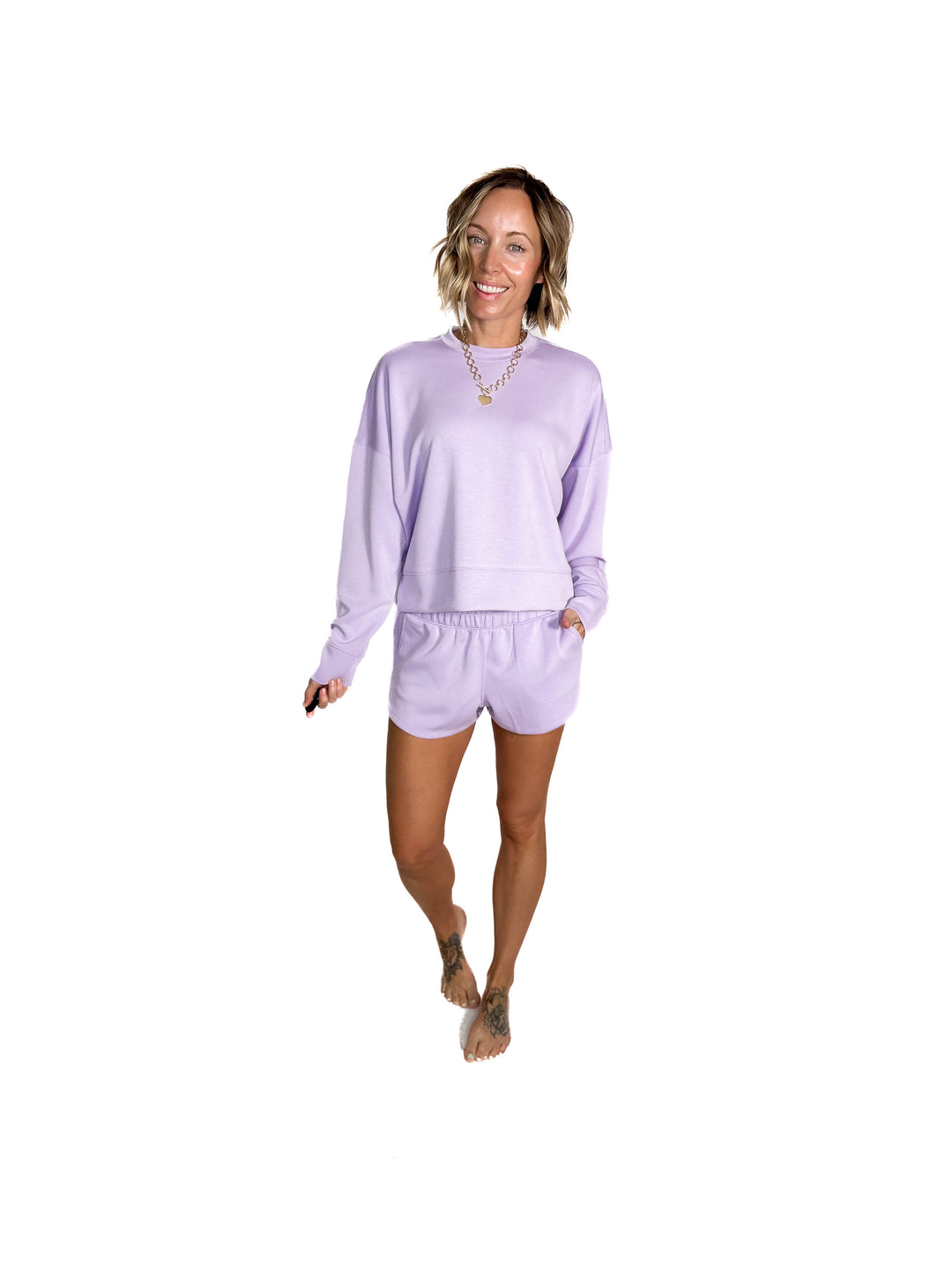 Kate Scuba Shorts Short Set- LILAC