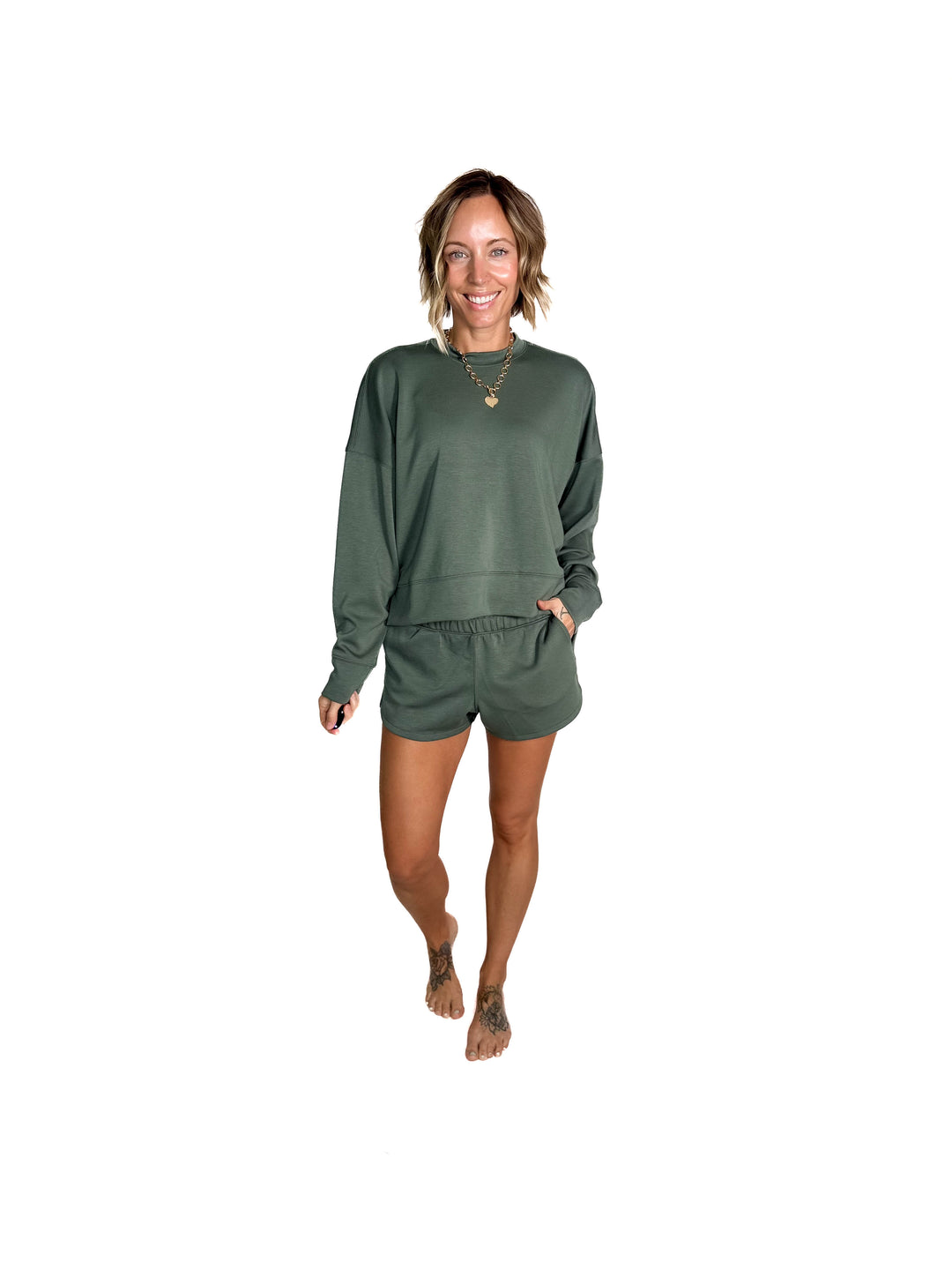Kate Scuba Shorts Short Set- DARK FOREST