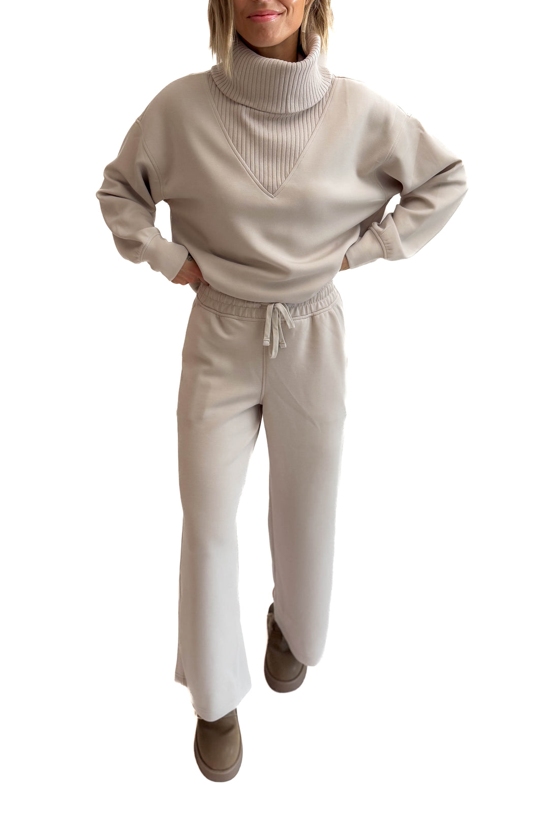 Sandra Scuba Mock Neck And Pullover Jogger Set- VANILLA