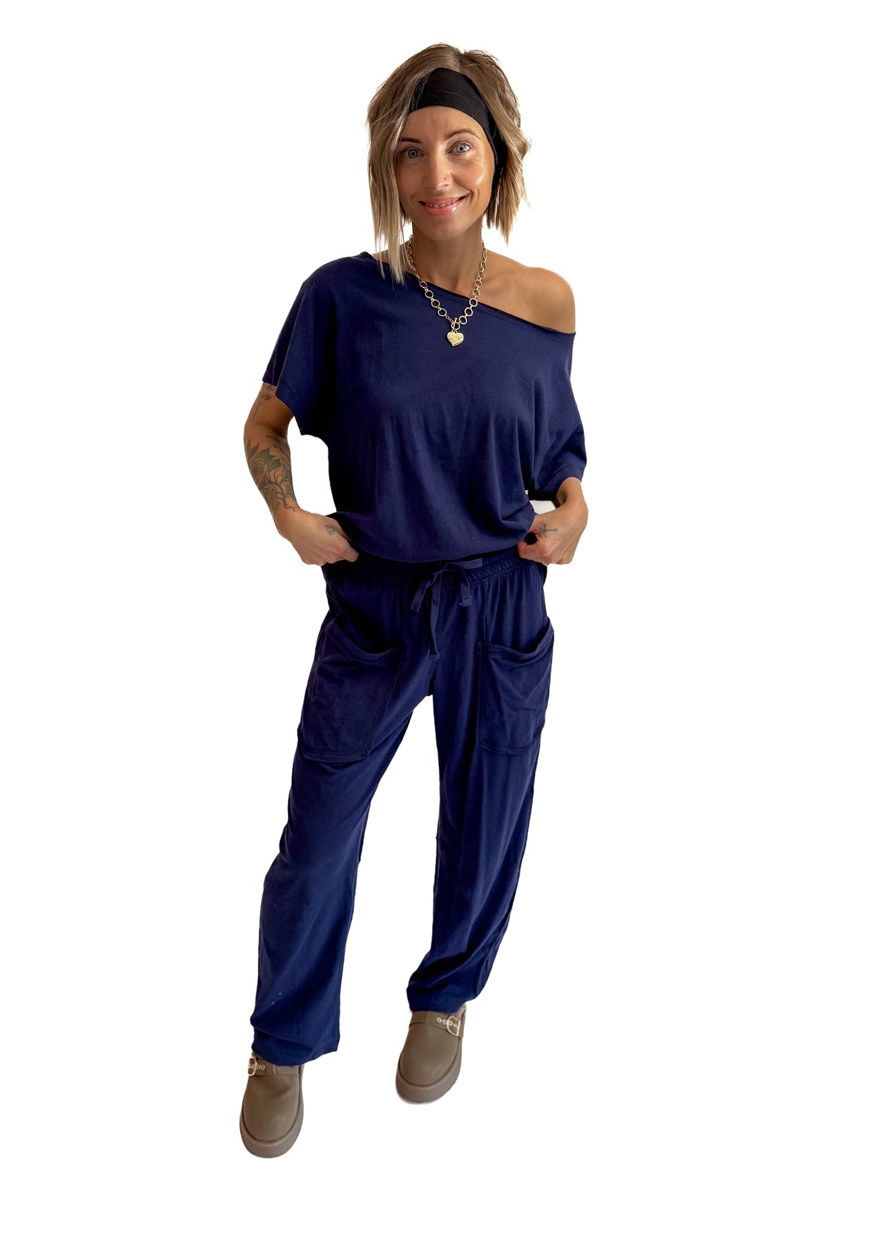 Easy, everyday two-piece set featuring a soft cotton top paired with relaxed, flowy pants for effortless comfort.