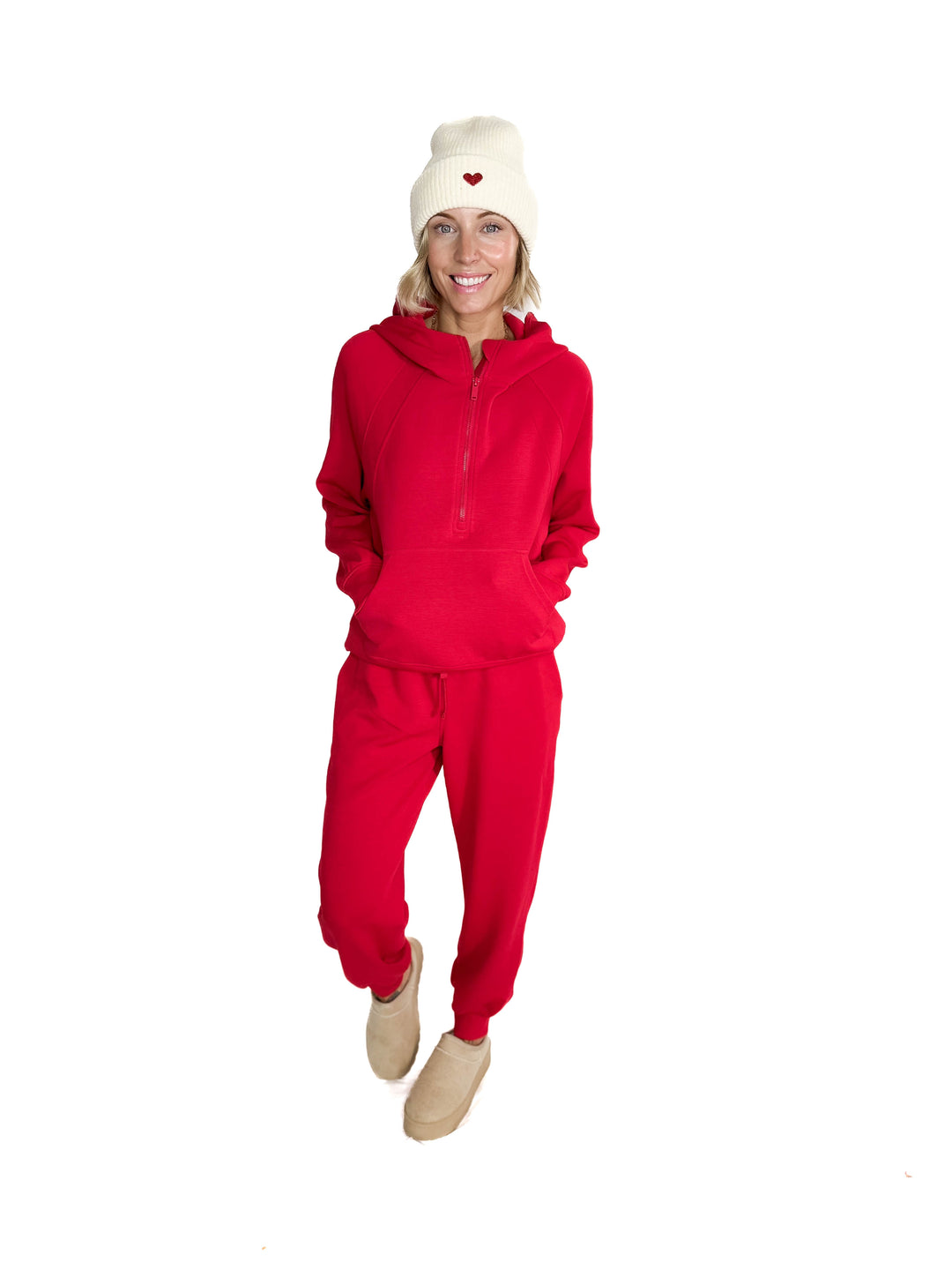 Everett Modal 1/2 Zip Hoodie- TRUE RED