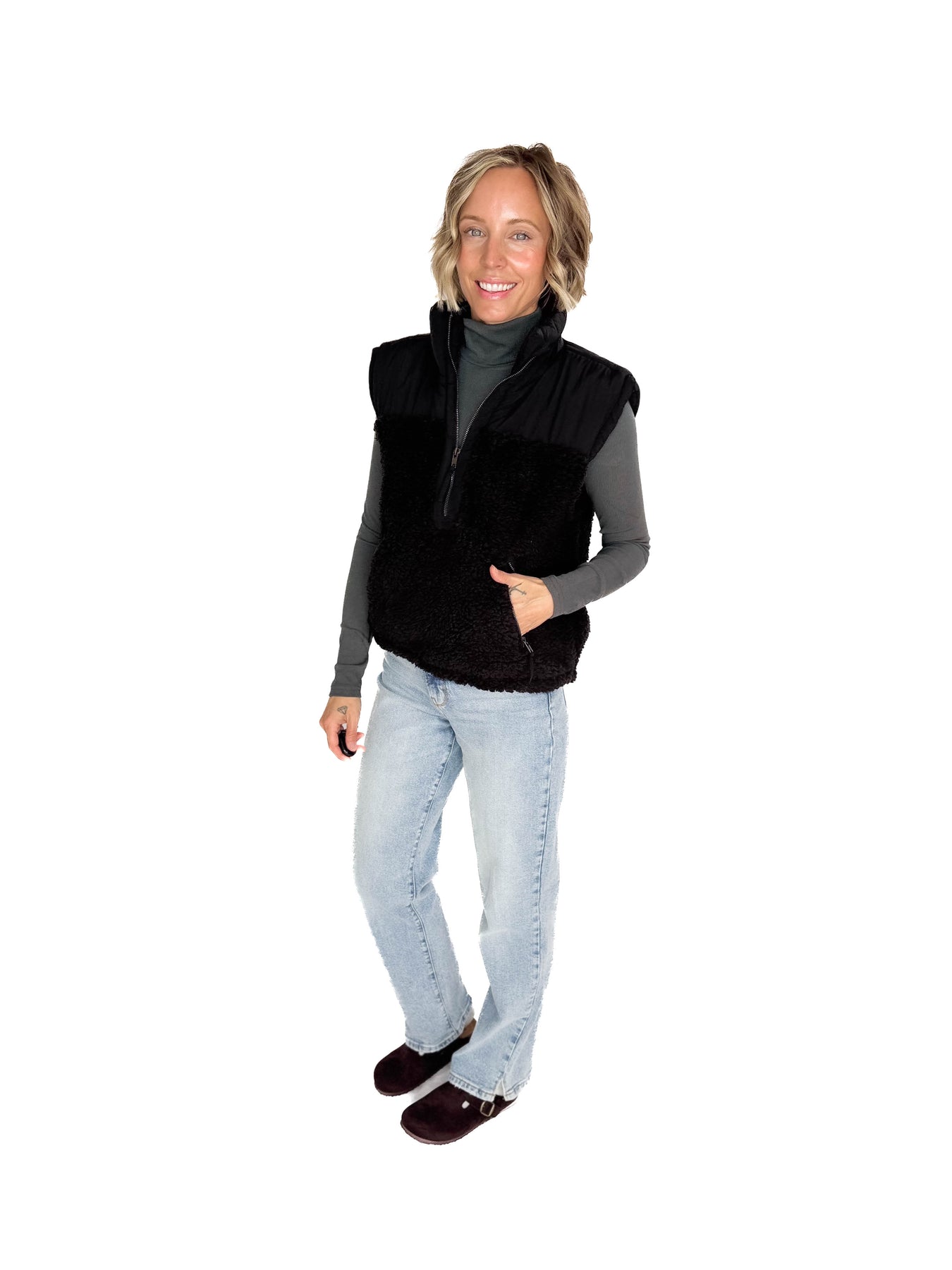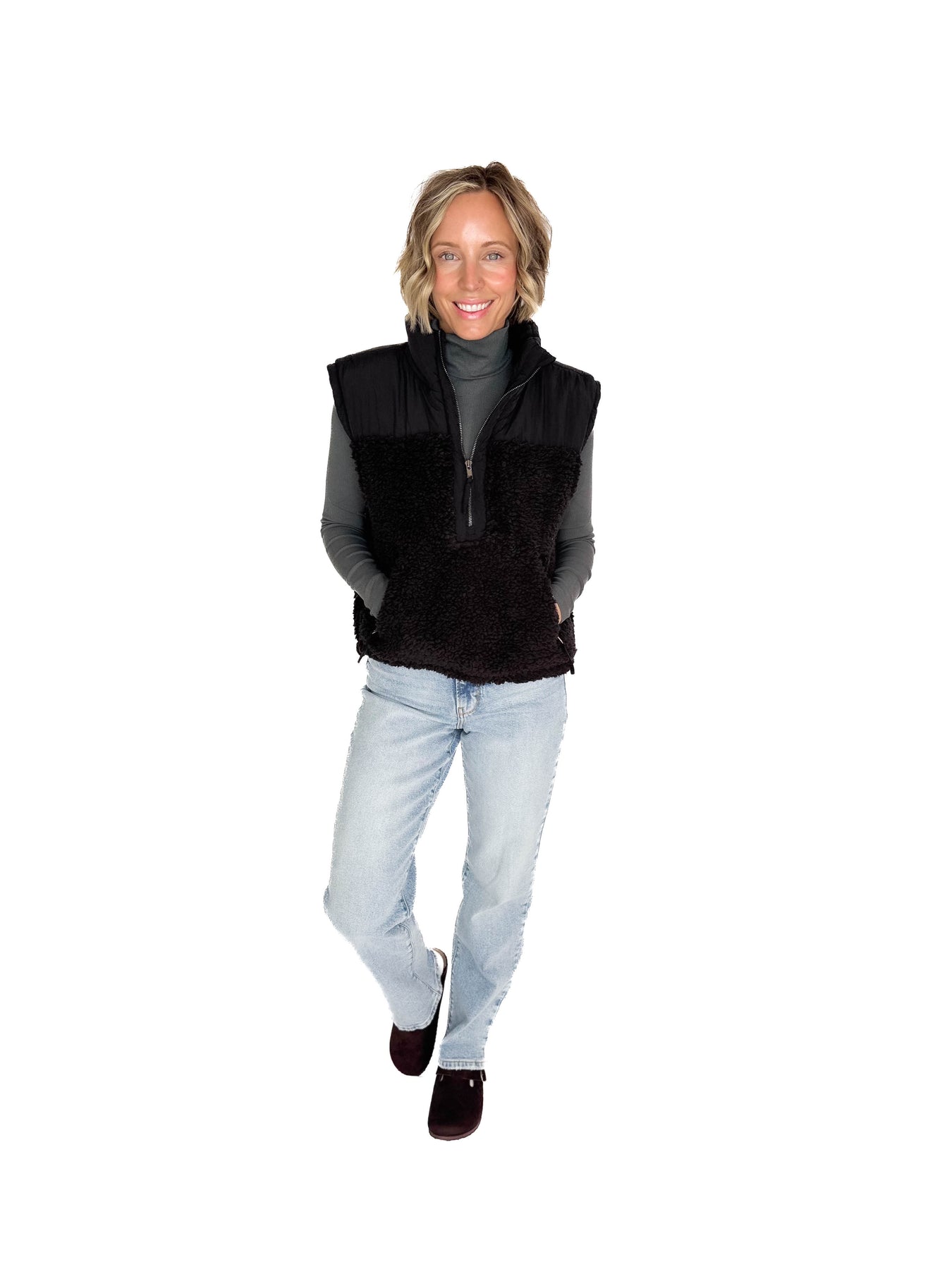Half zip, full comfort. Sherpa softness meets street-ready style.