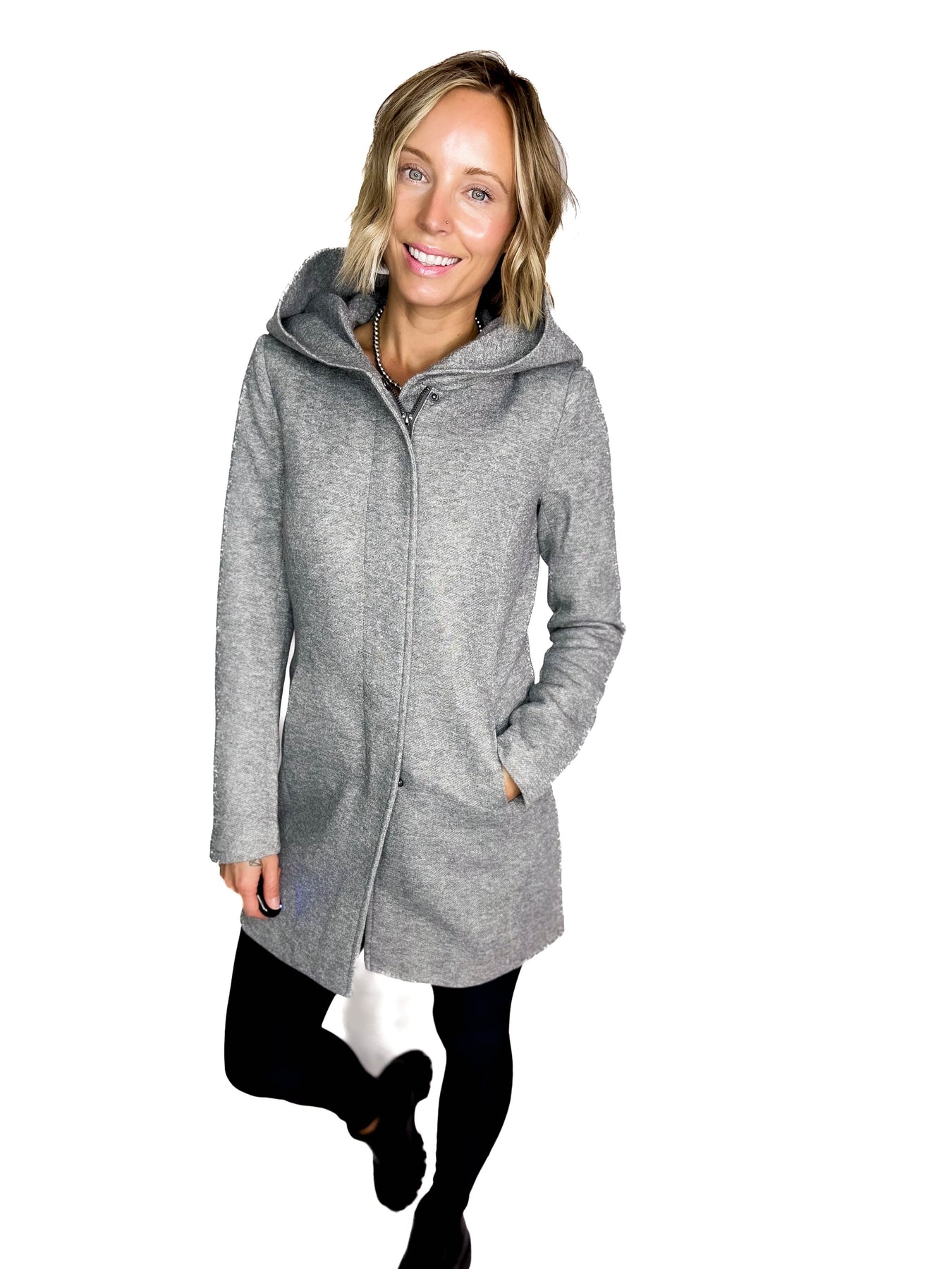 Chic yet casual! full zipper and snap closure coat with a soft lining, pockets, hood, and subtle shoulder pads for a more tailored look.