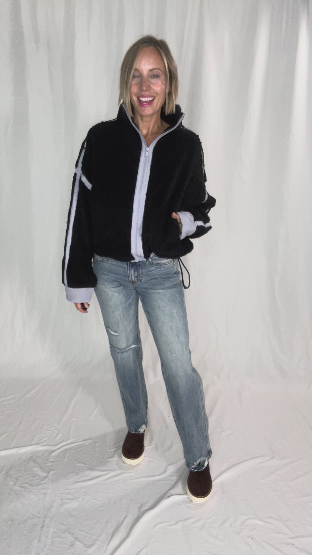 RD STYLE Jill Funnel Neck Sherpa- BLACK