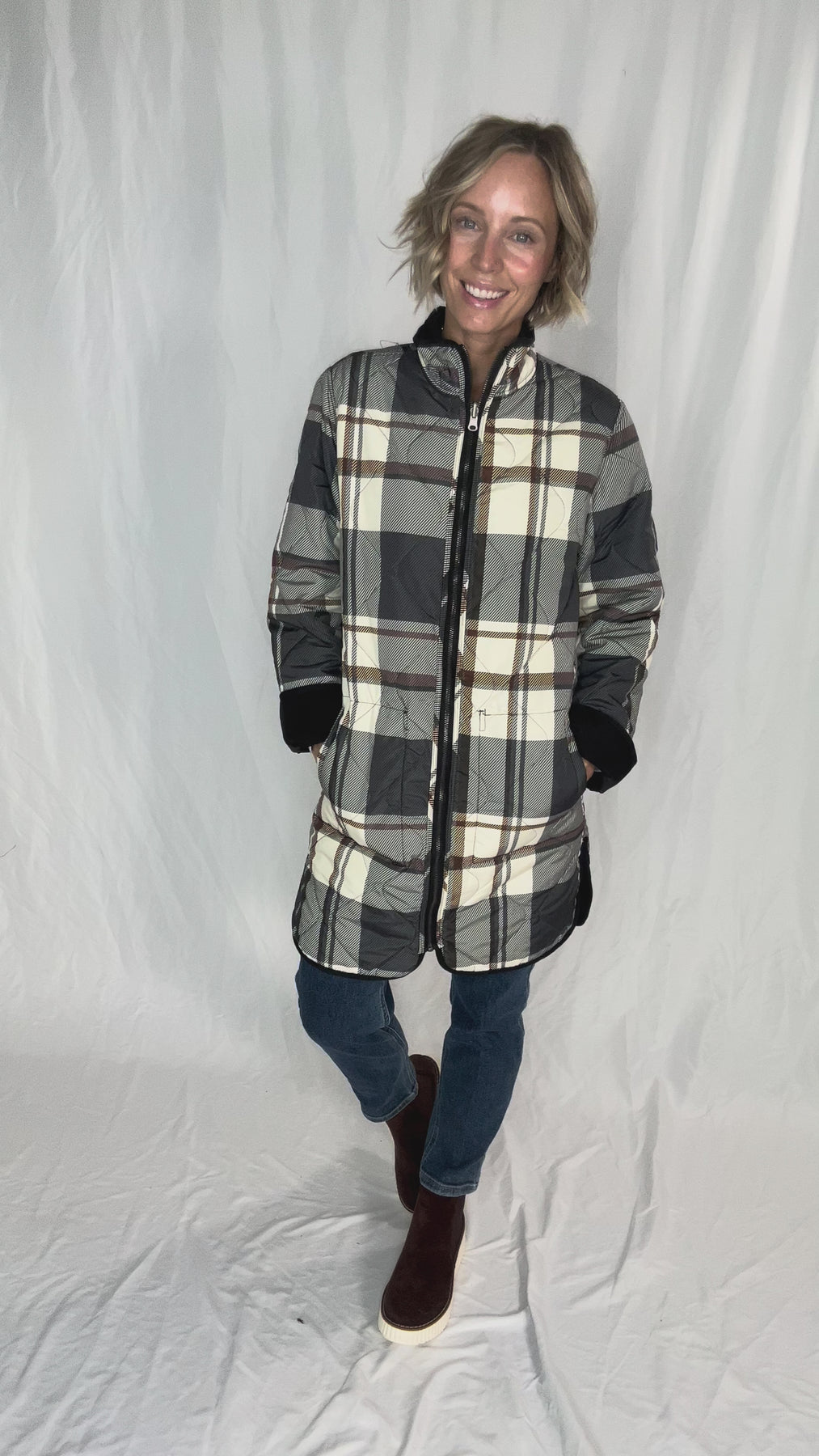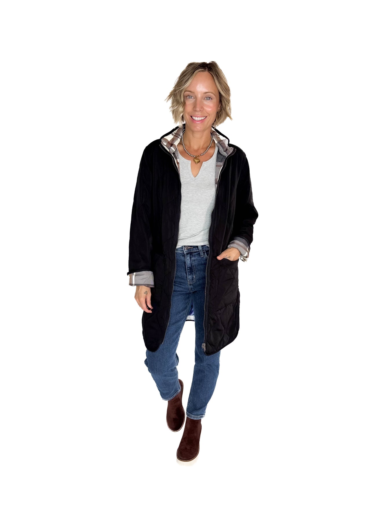 THREAD & SUPPLY Nixie Quilted Reversible Jacket- BLACK/PLAID