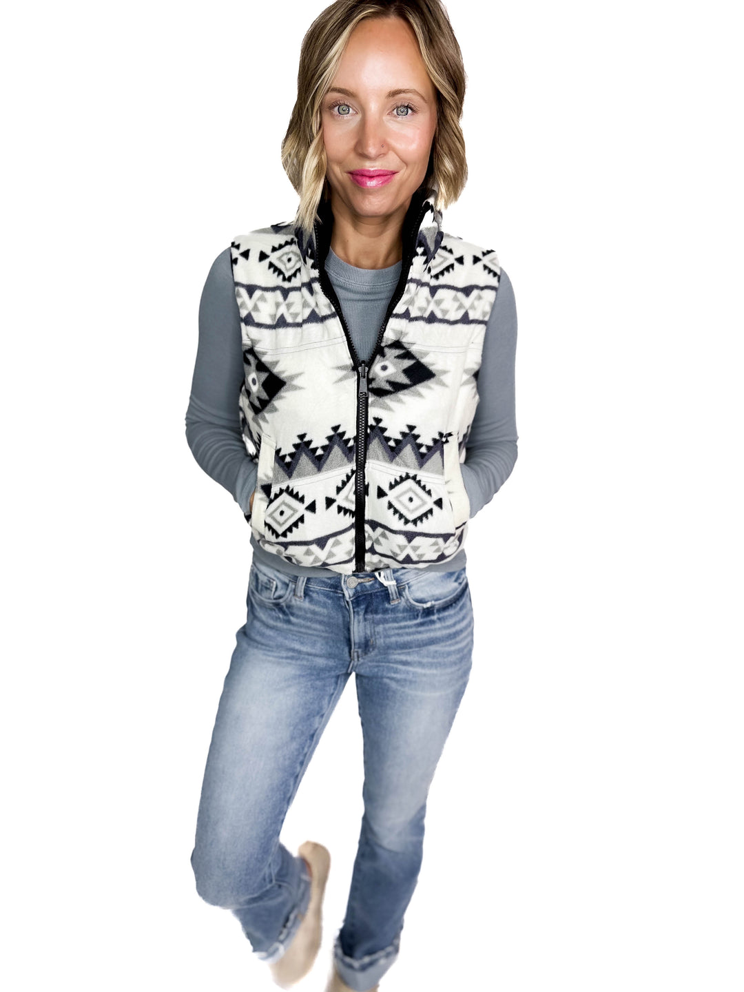 Ainsley Longline Sherpa Jacket- SEPIA GEOMETRIC