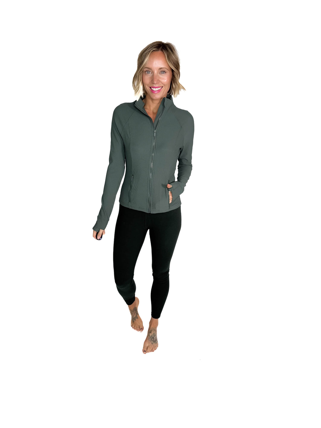 Aero Stretch Ribbed Jacket- DARK FOREST