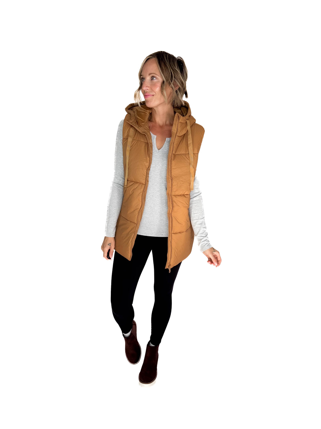 Mono B Kimberly Longline High Neck Padded Vest- CAMEL