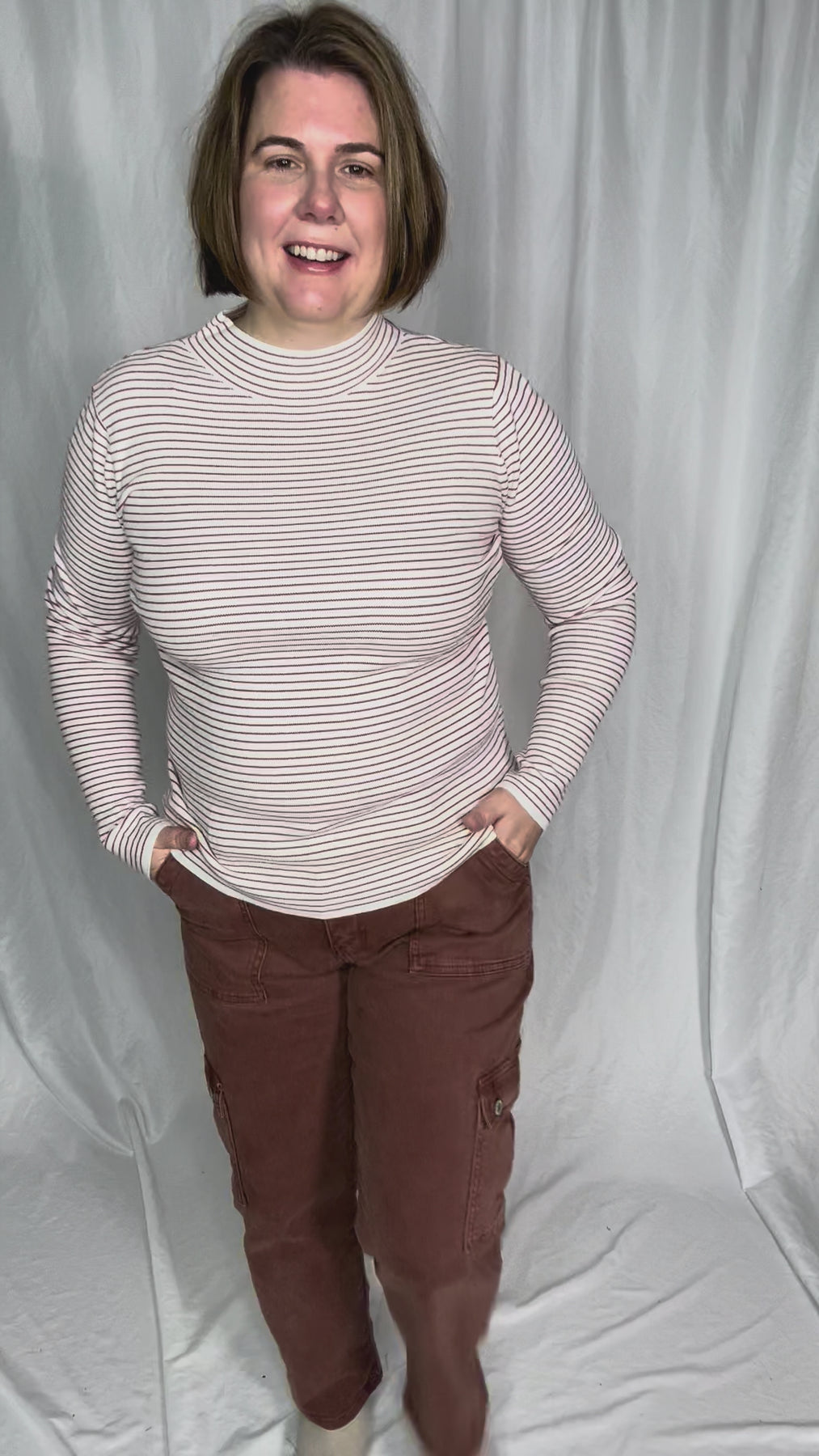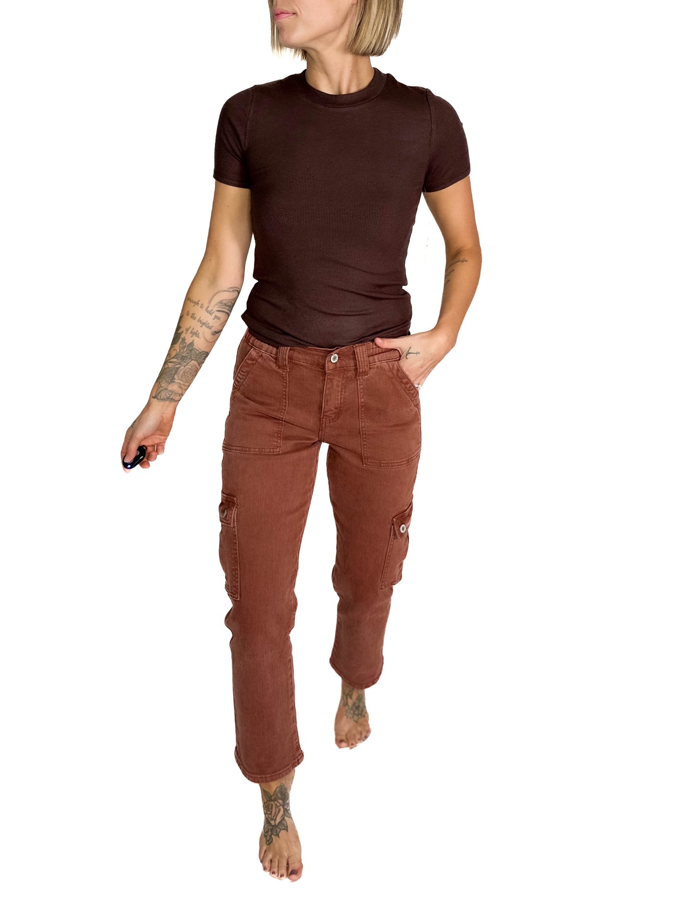 VERVET Clay High Rise Straight Leg Cargo Jean- RED BRICK