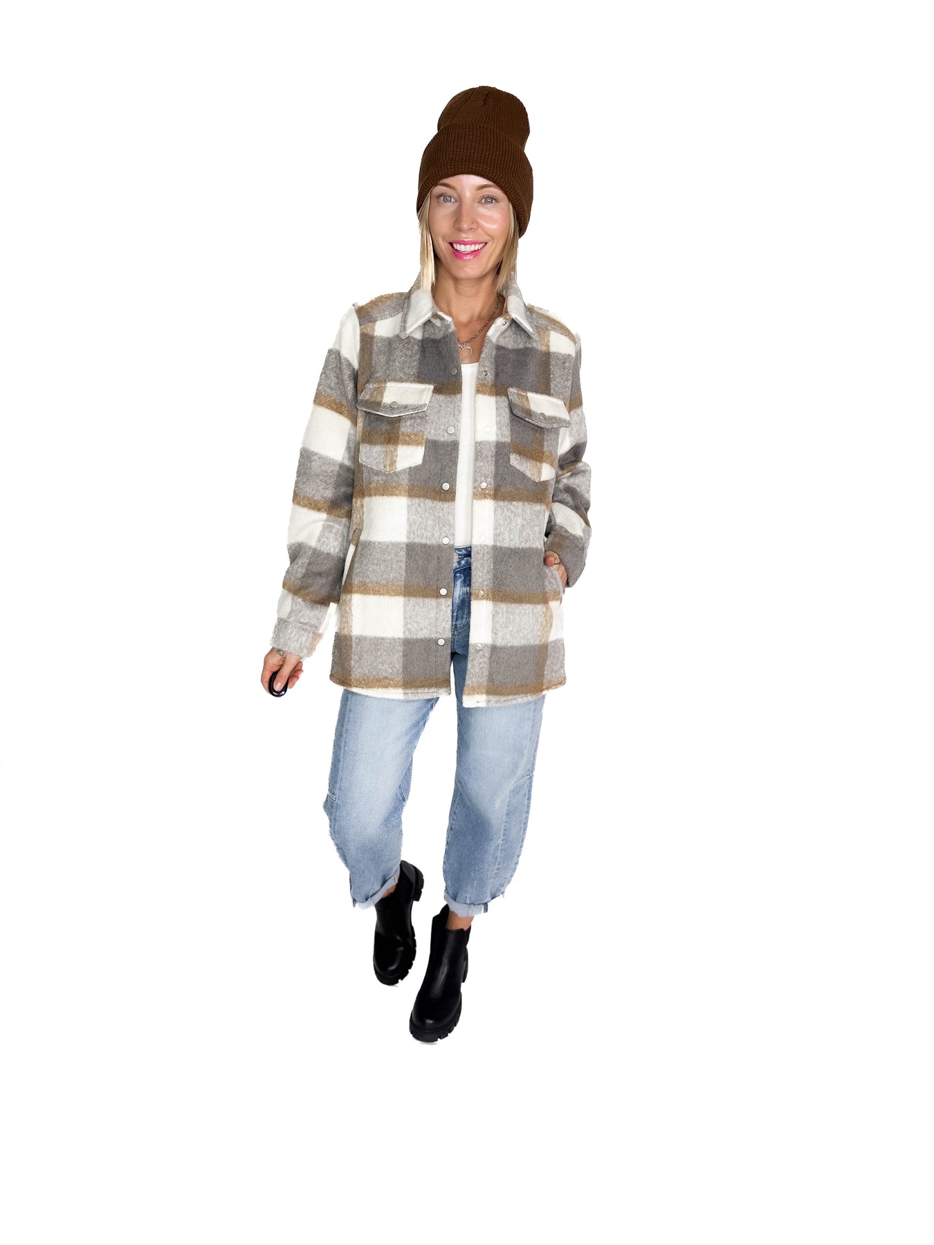 - The perfect blend of cozy and cool — this brushed plaid shacket is a fall staple