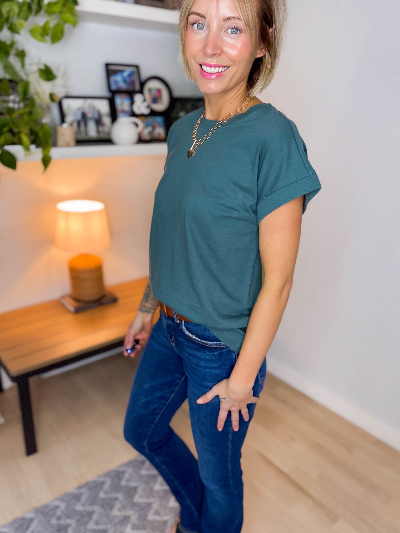 Addison Cotton Folded Sleeve T-Shirt- ASH JADE