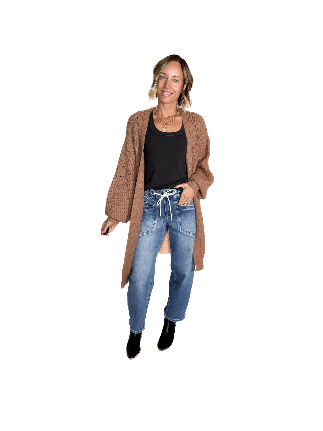 Myah Waffle Duster Cardigan-BLACK