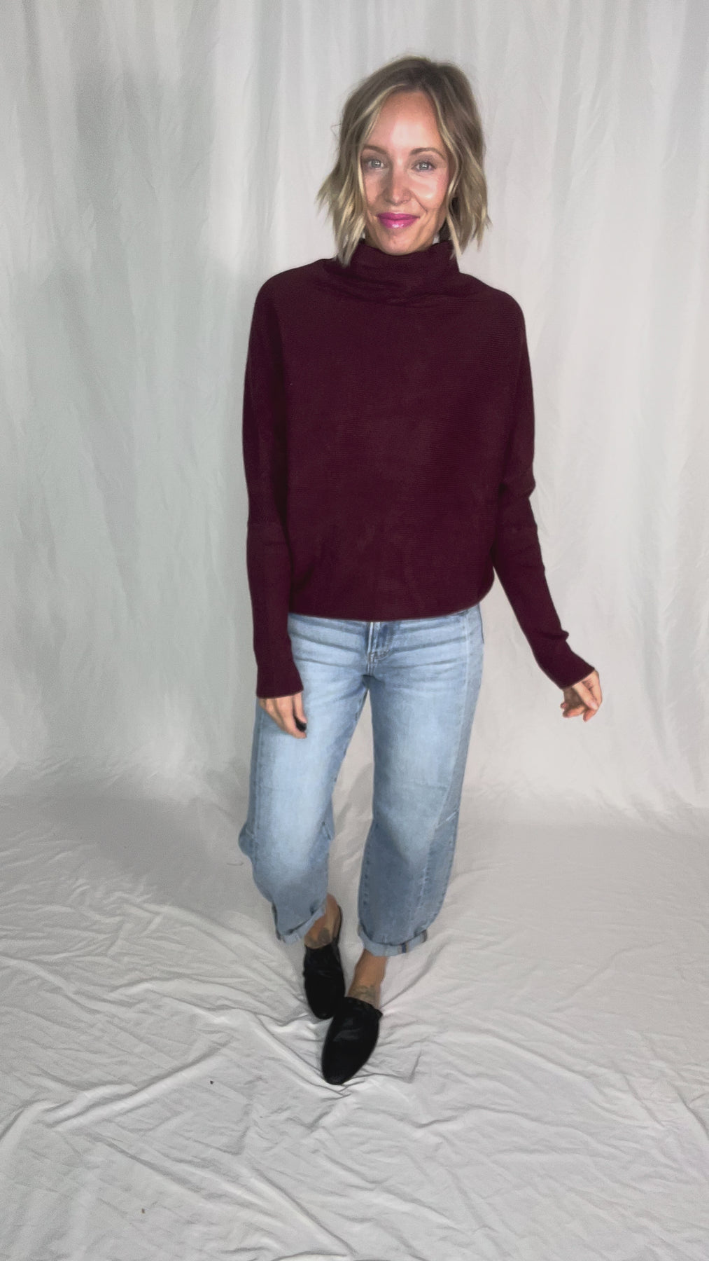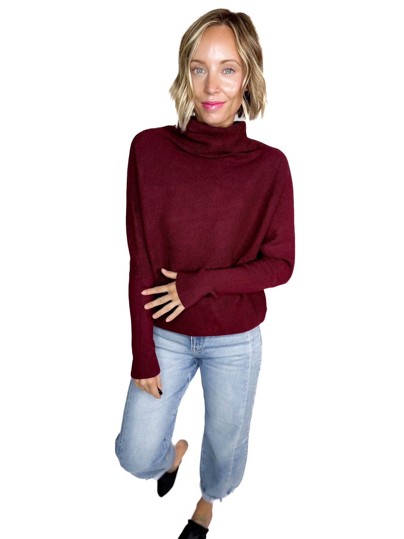 • Soft dolman knit design with fitted sleeves and a cinched hem