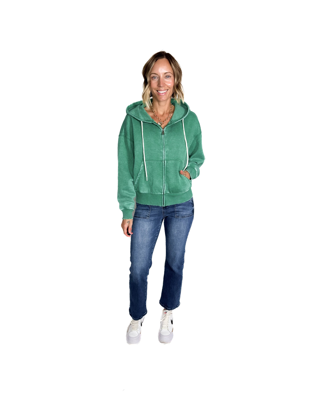 Muse Acid Wash Fleece Zip Up Hoodie- GREEN