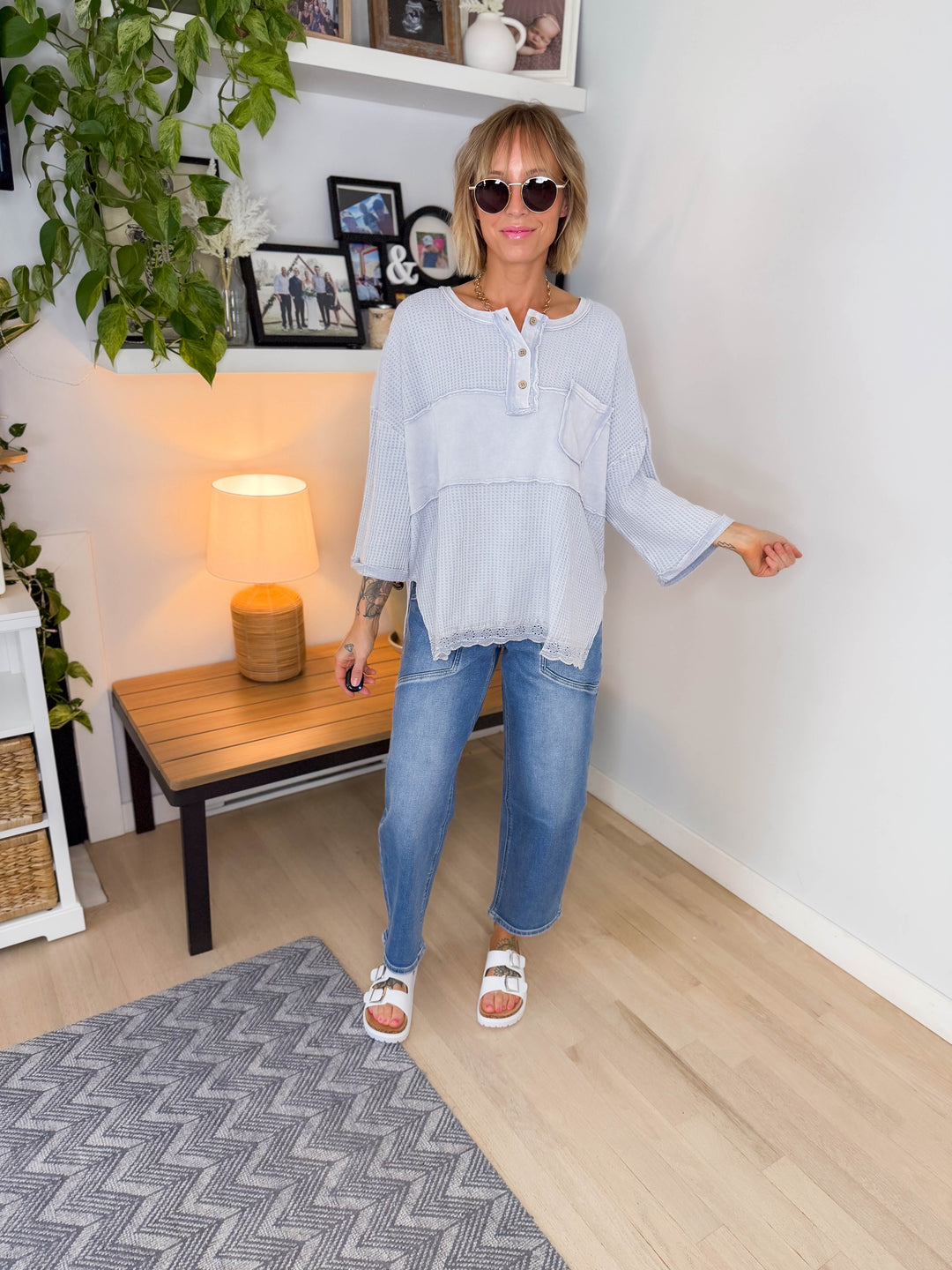 Penney 3/4 Sleeve Ribbed Pullover- BLUE GREY