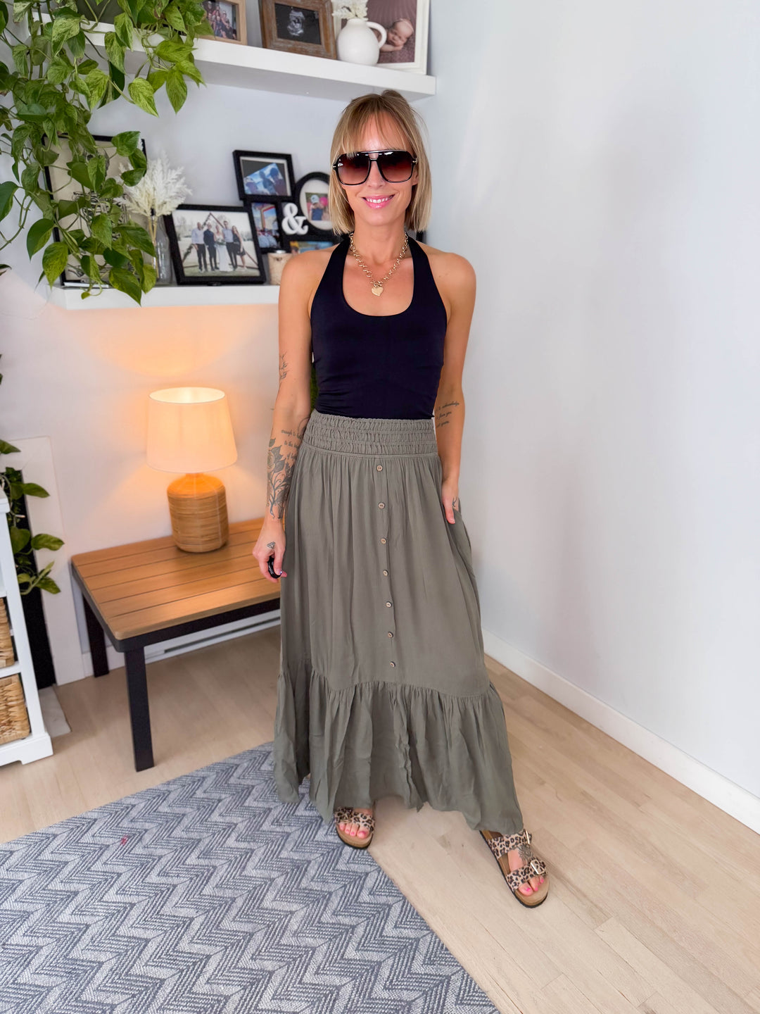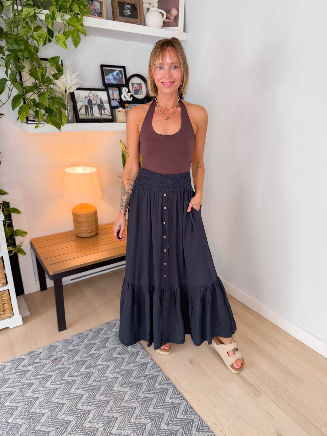 Keke Smocked Maxi Skirt- MIDNIGHT