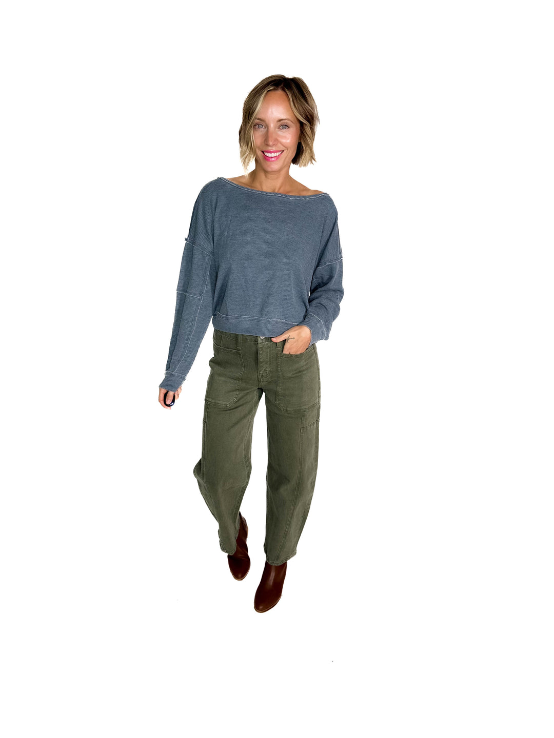 MONO B Aris Waffle Boat Neck Pullover- SILKY PINE