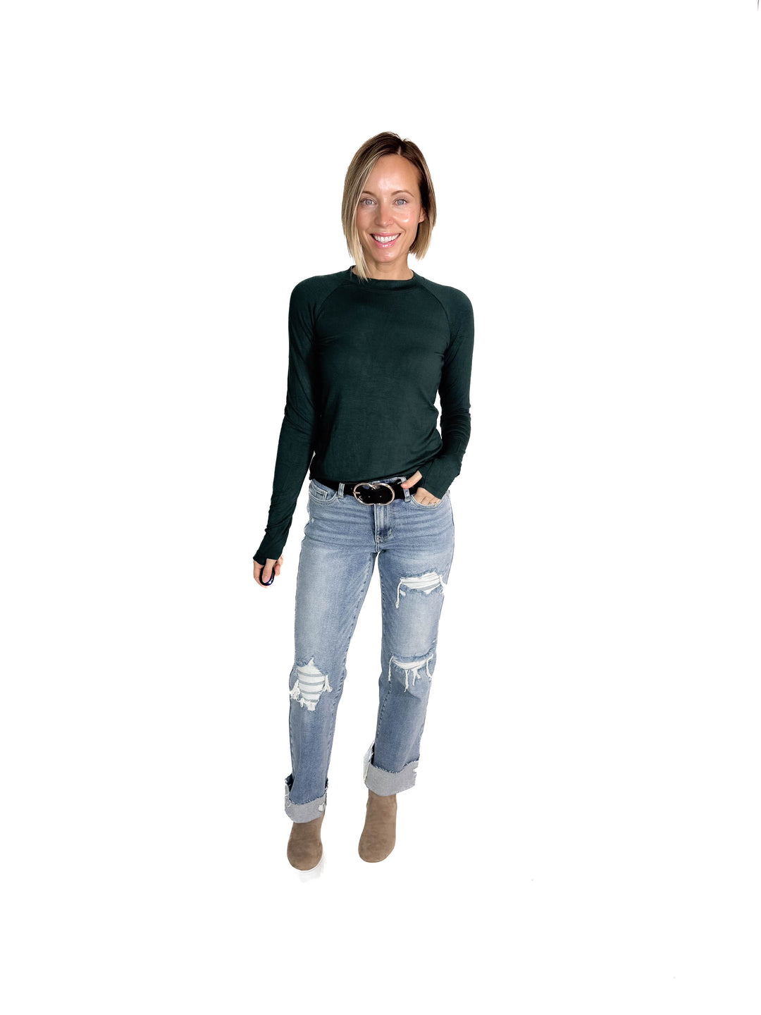 MICHELLE MAE Blair Long Sleeve- HUNTER GREEN