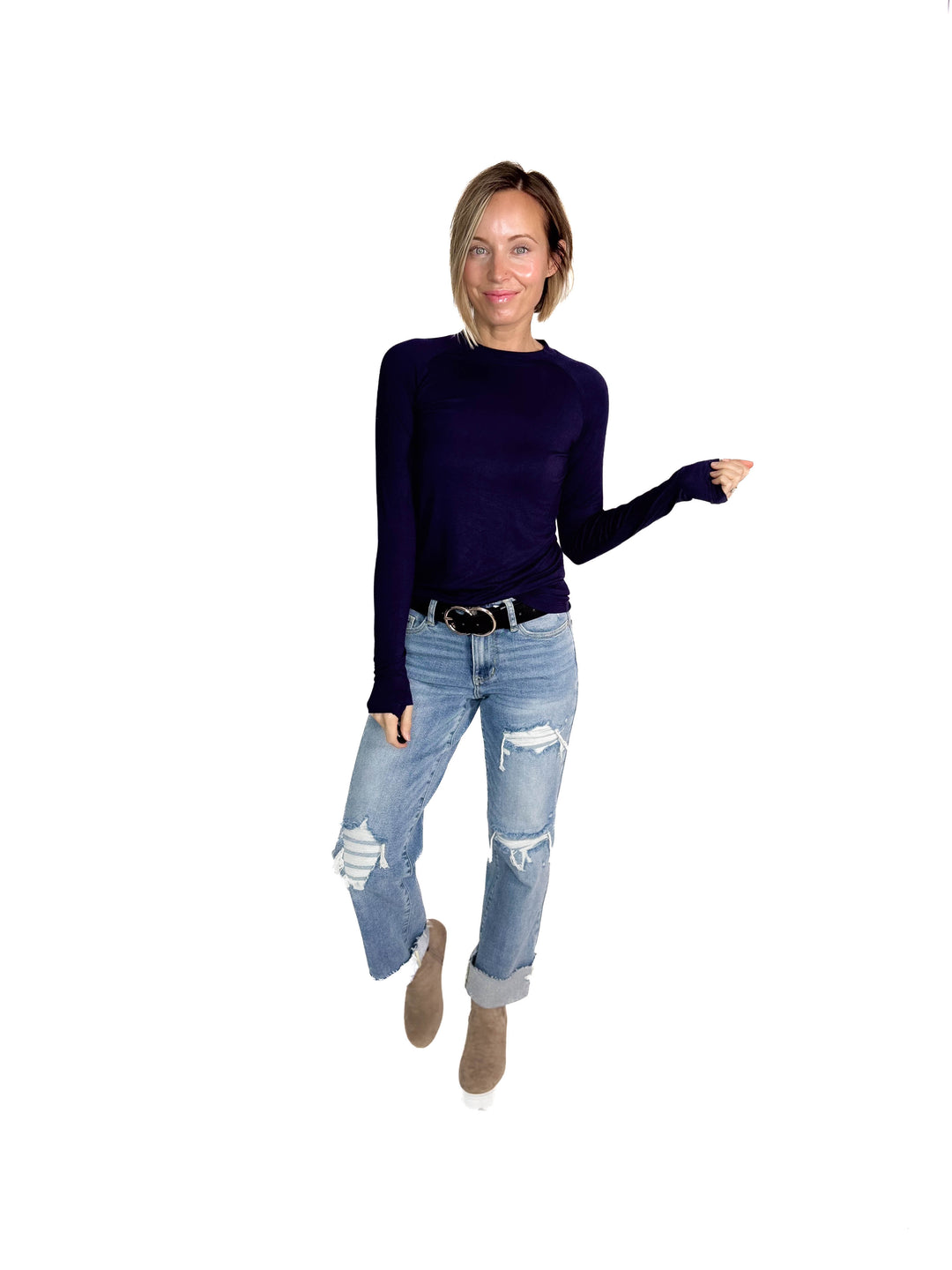 MICHELLE MAE Blair Long Sleeve- NAVY