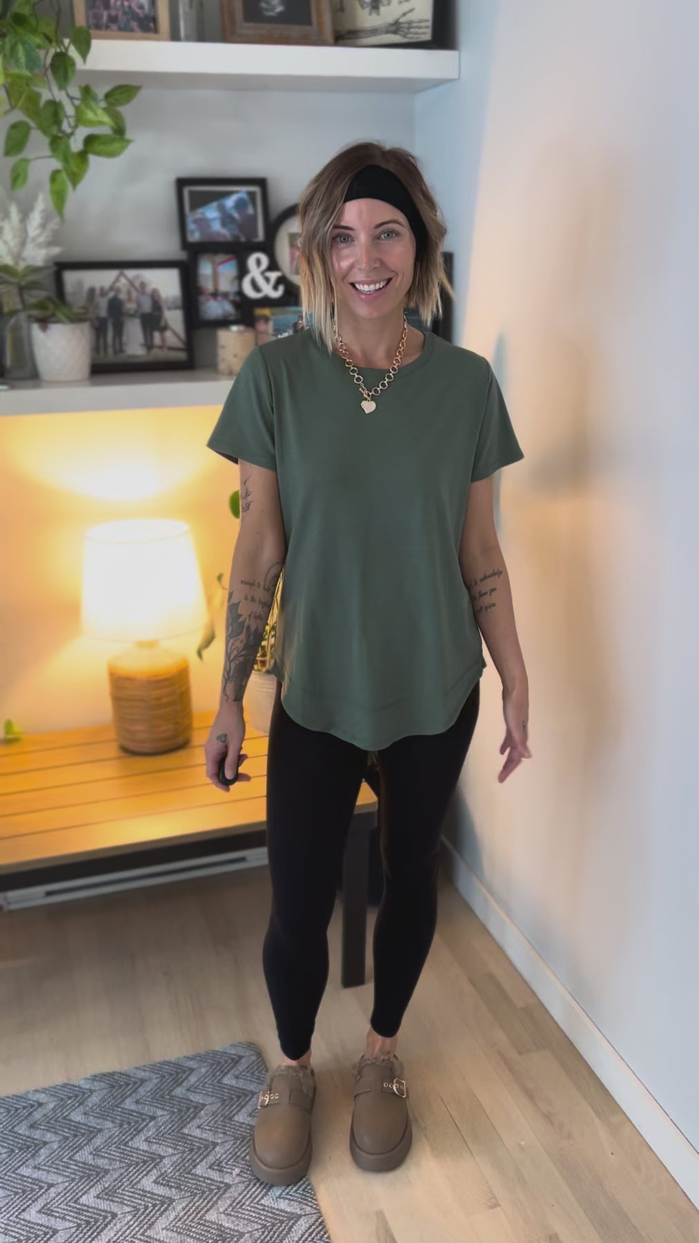 MONO B Arlene Soft Curve Pima Cotton Tee- ELDERGREEN