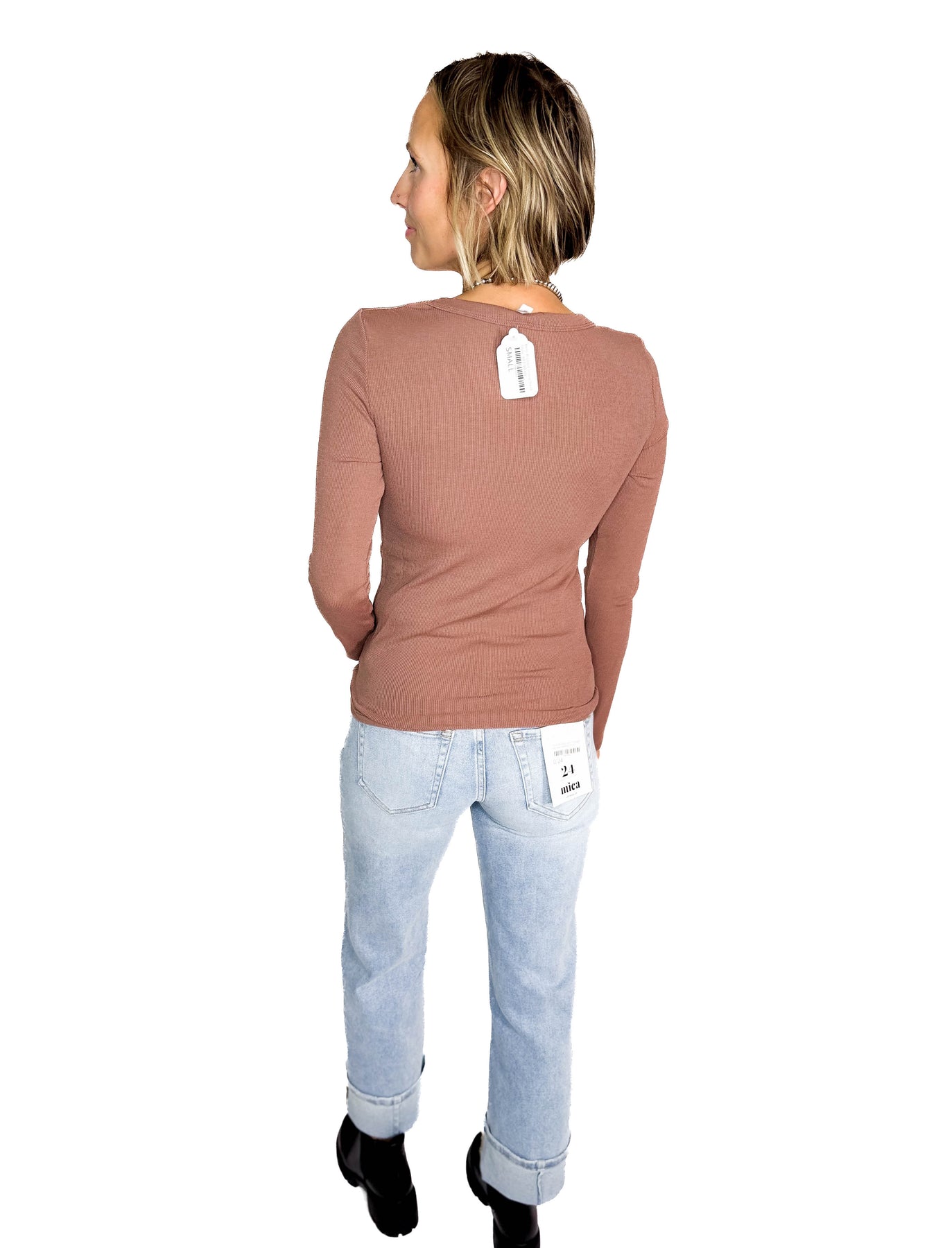 Beth Ribbed Scoop Neck Style- RED BEAN