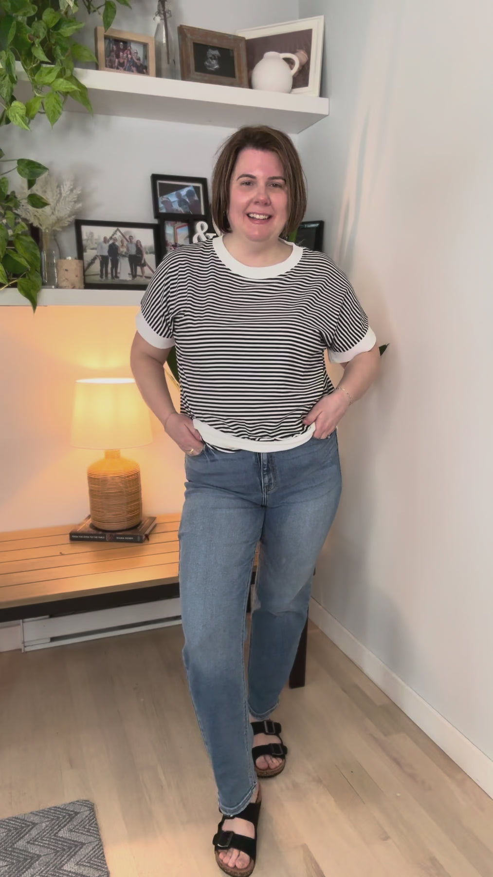 Casey Striped 1/2 Sleeve Top- BLACK
