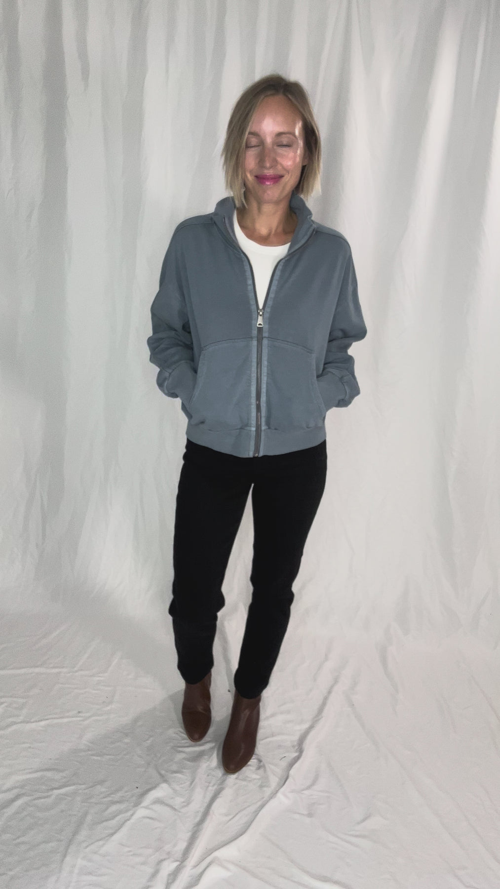Adeline Cozy Acid Wash High Collar Full Zip