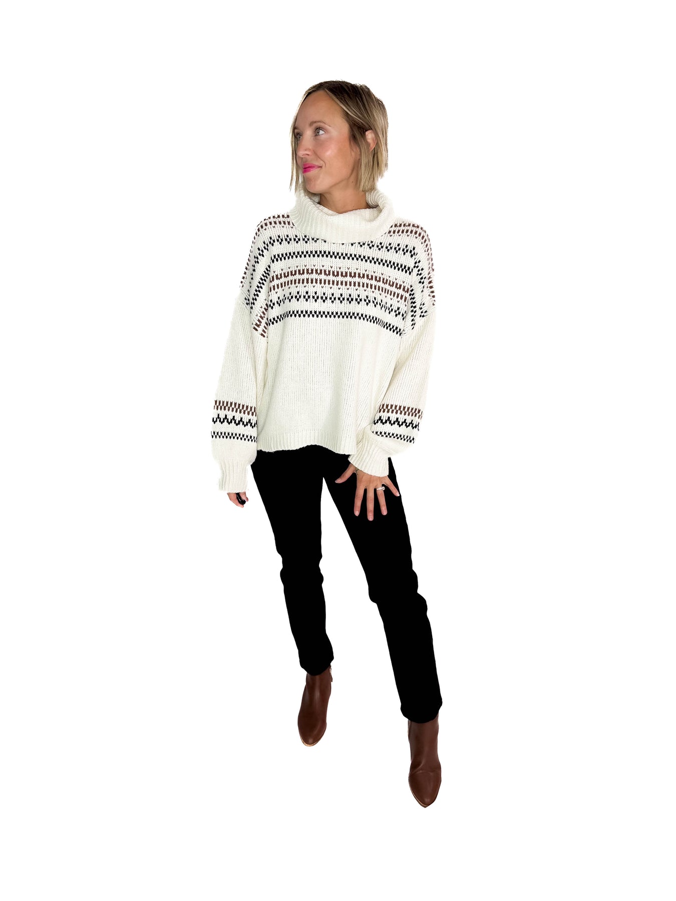 Additional: fold down cowl neck, soft knit