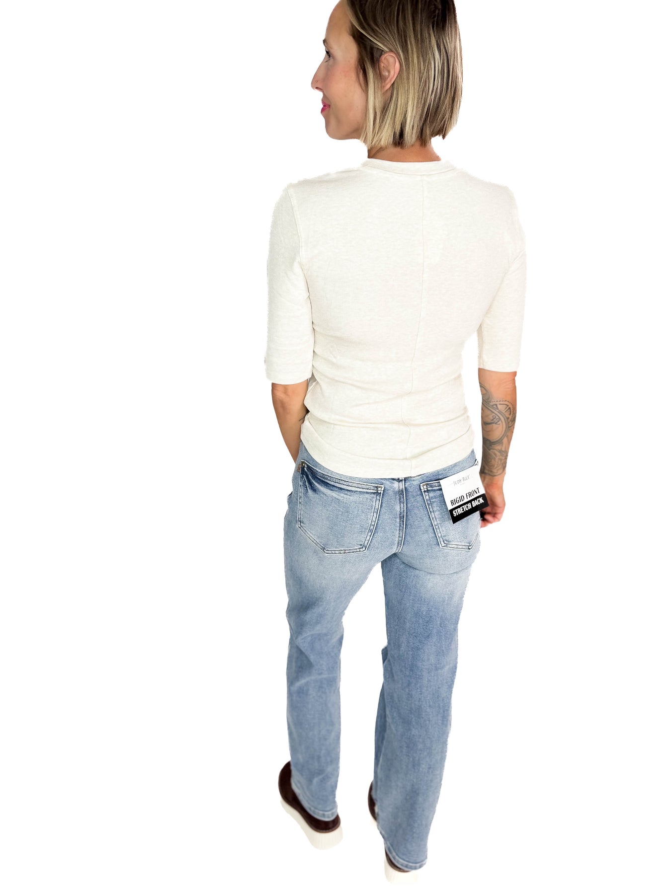 Janelle Soft Classic Ribbed Crewneck 1/2 Sleeve- OATMEAL