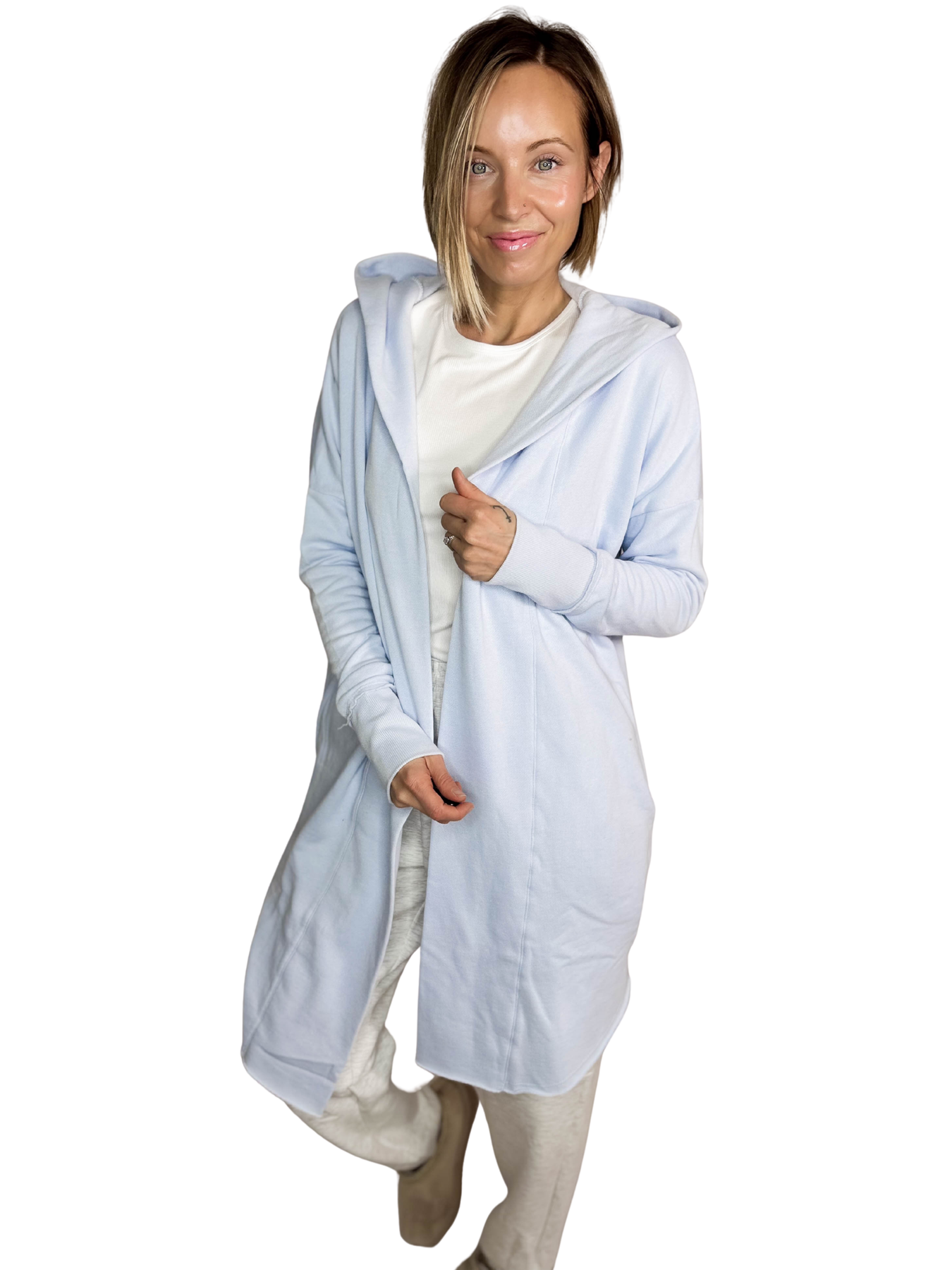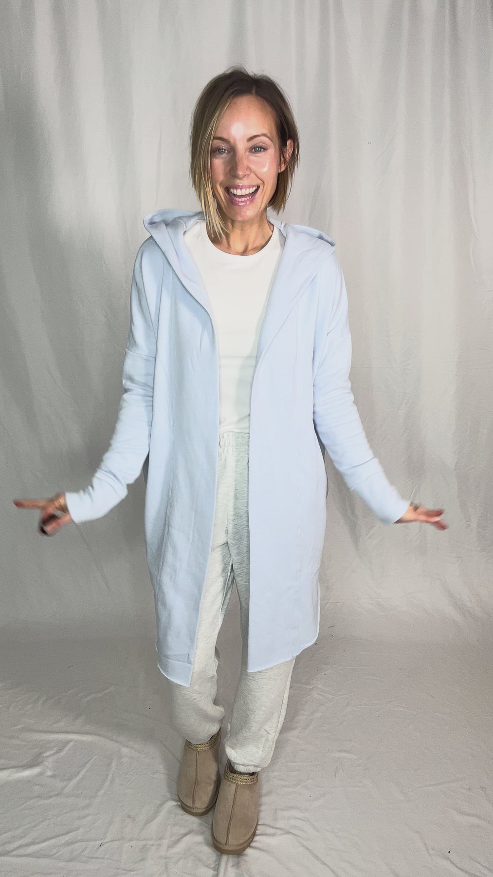 MONO B Whistler Longline Hoodie Cardigan- PALE BLUE