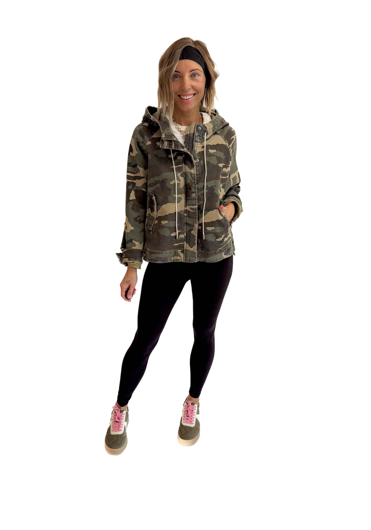 • Camo print adds an effortless, laid-back vibe