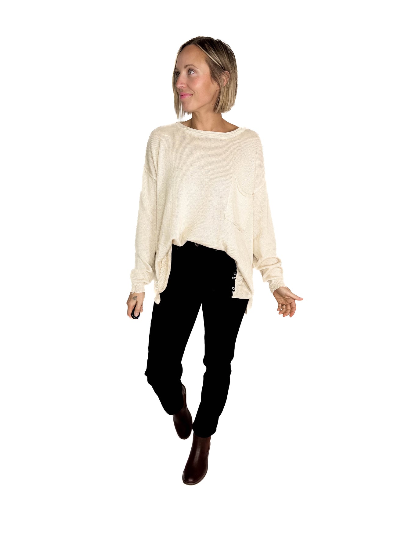 Sona Distressed Tunic Sweater- OATMEAL