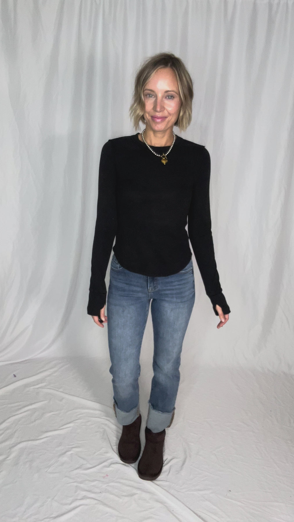 Soft, stretchy, and effortlessly cool — the ribbed crewneck with thumbholes and a rounded hem. ✨