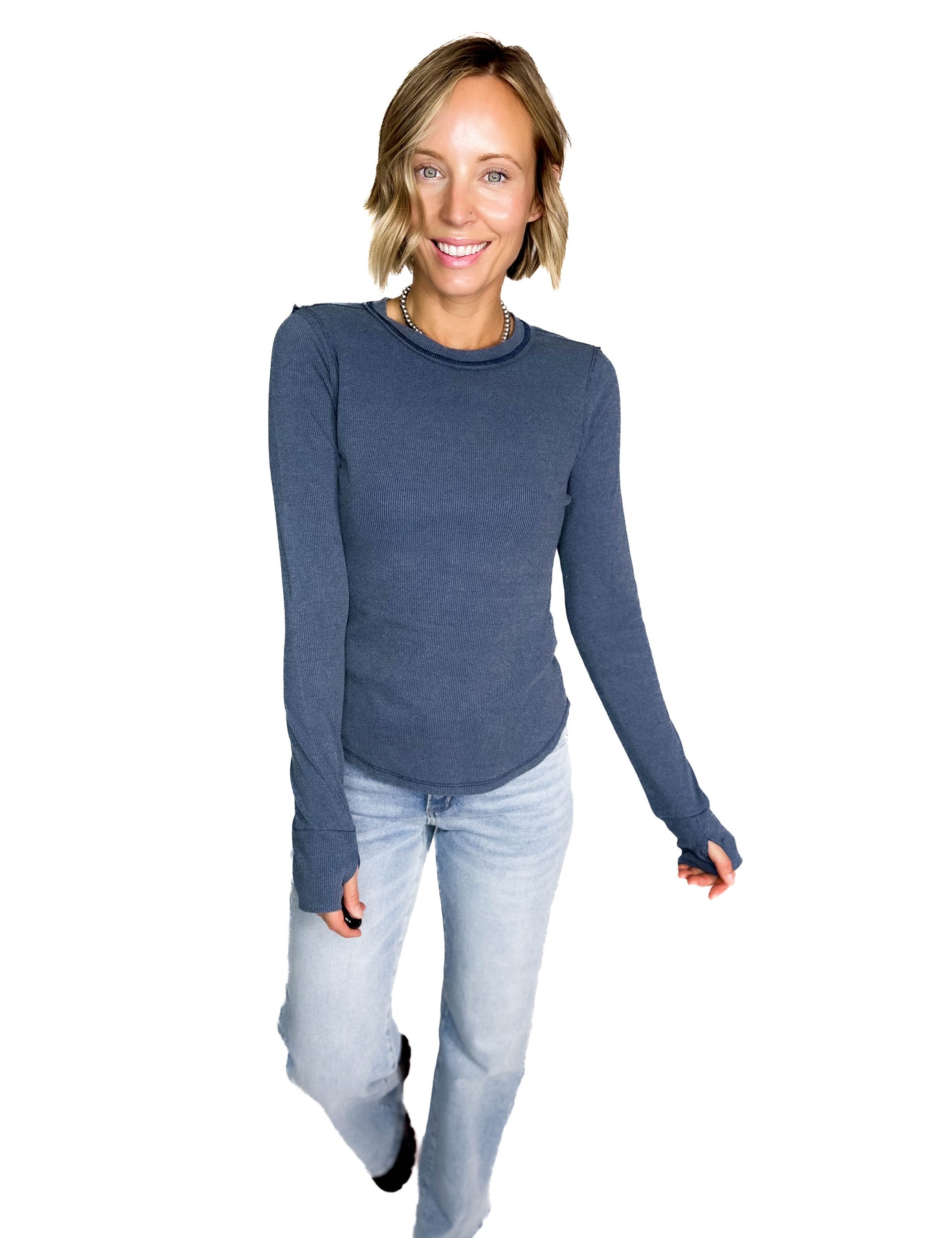 Additional: Ribbed, Long sleeve, Crew Neck, Thumb Holes, Inverted Seams, Rounded Hem