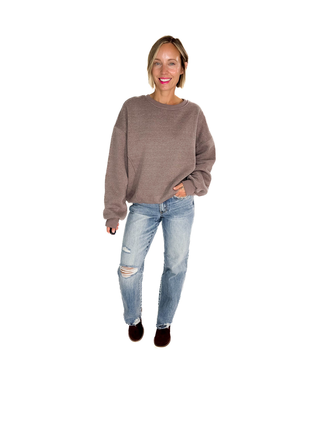Elowen Melange Fleece Sweatshirt- WALNUT