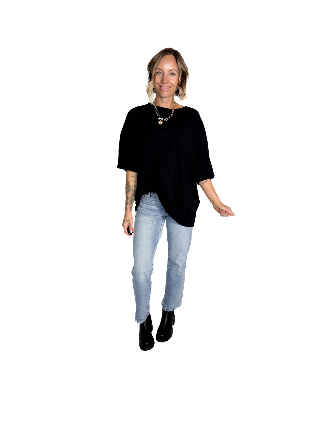 Lila Oversized Cotton Tunic Tee- BLACK