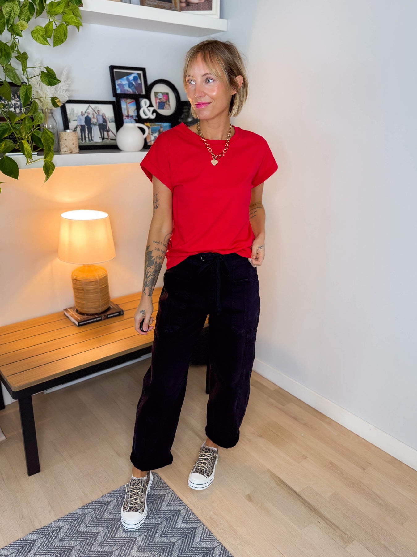 Addison Cotton Folded Sleeve T-Shirt- RUBY