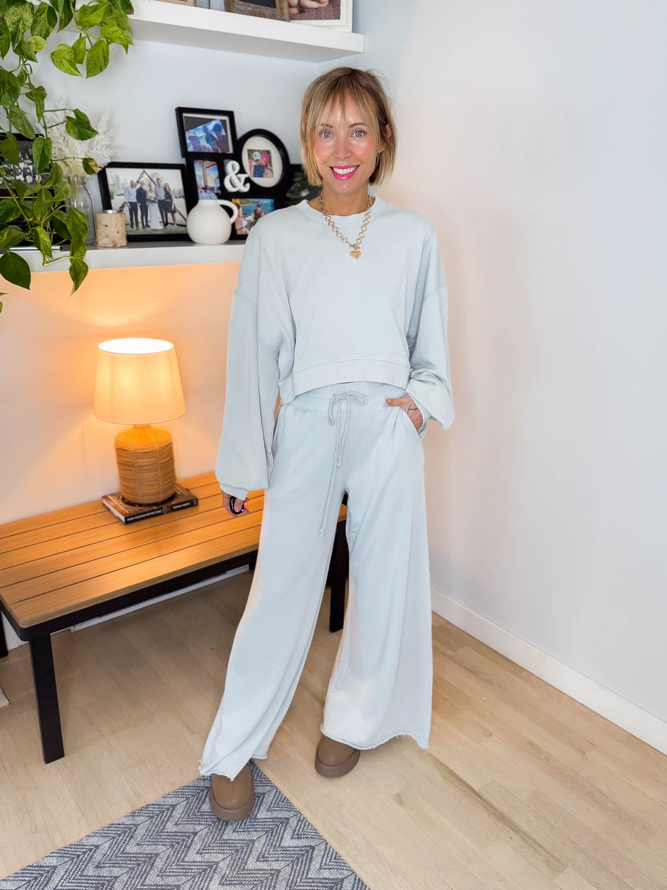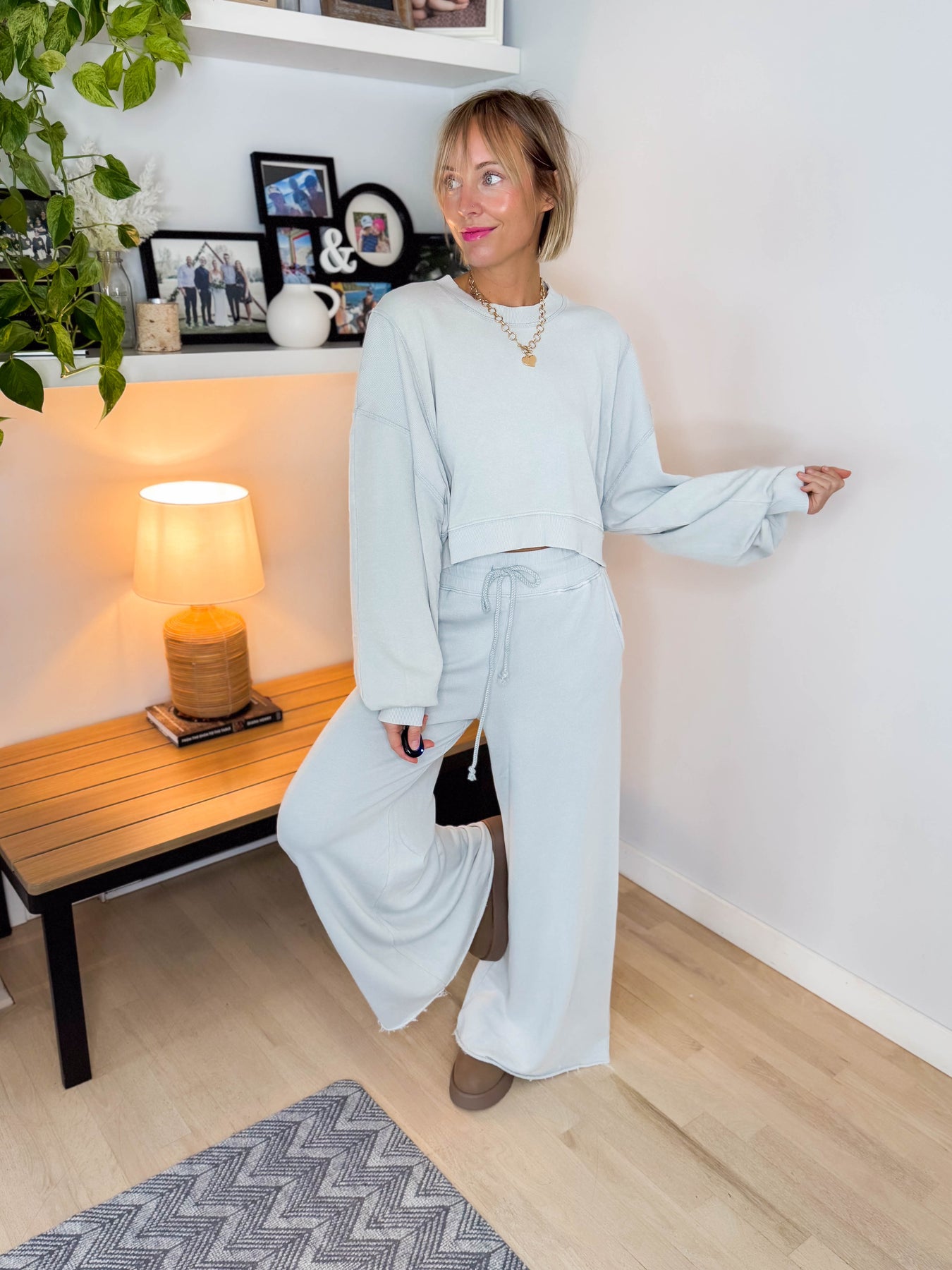 Cozy meets elevated in this effortlessly chic two-piece lounge set — perfect for relaxed days while still looking put together.