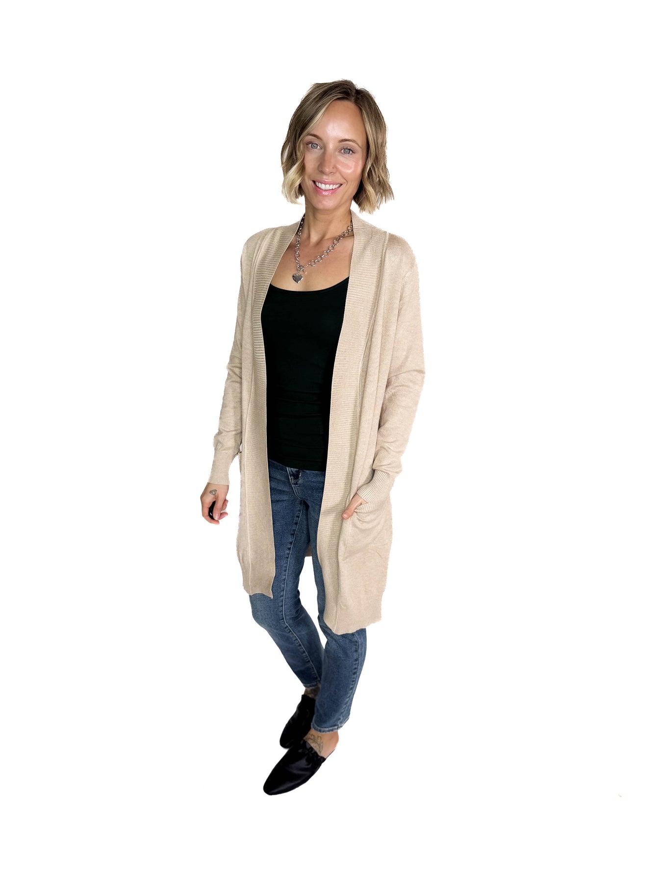 Additional: Soft Micro Knit, Open Cardigan, Pockets, Ribbed Edging, Small Side Slits