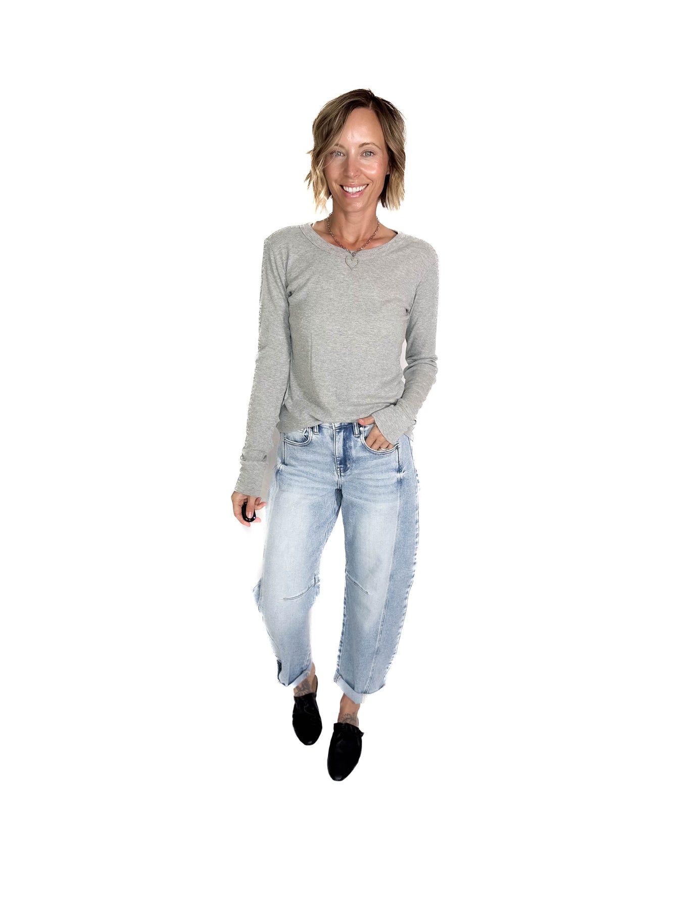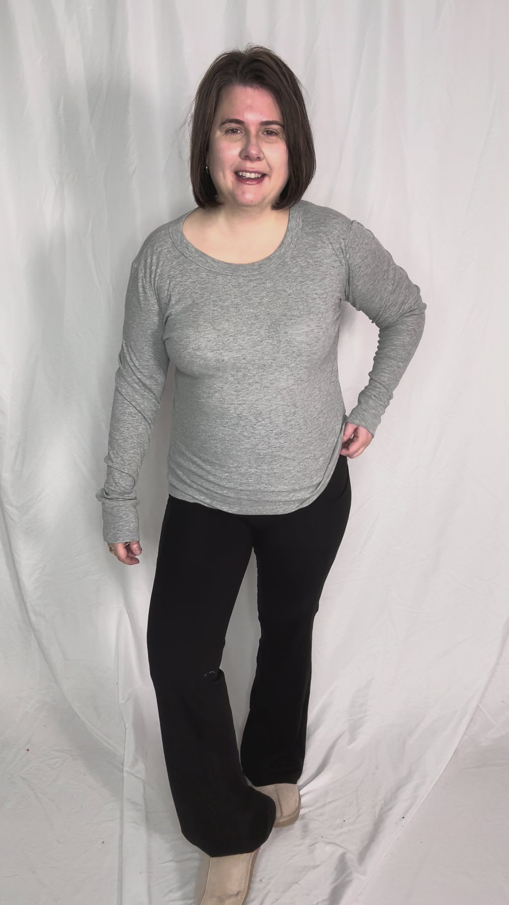 Brenda Ribbed Cotton Long Sleeve- HEATHER GREY