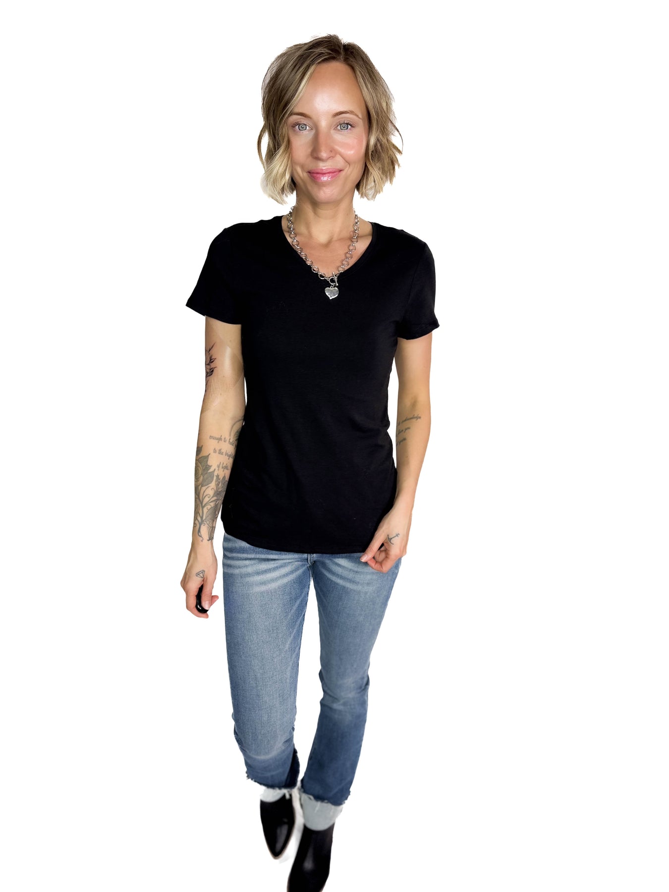 Alder Stretch Cotton V-Neck Tee- BLACK