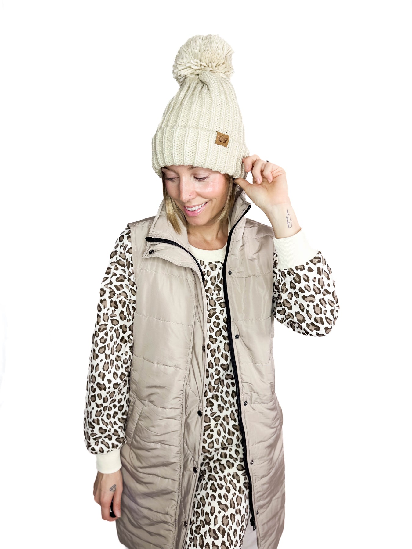 Additional: Classic Cable Knit Pom Beanie, Extra Warm for Chilly Winter Days, Wintery Cable-Knit Pattern Details