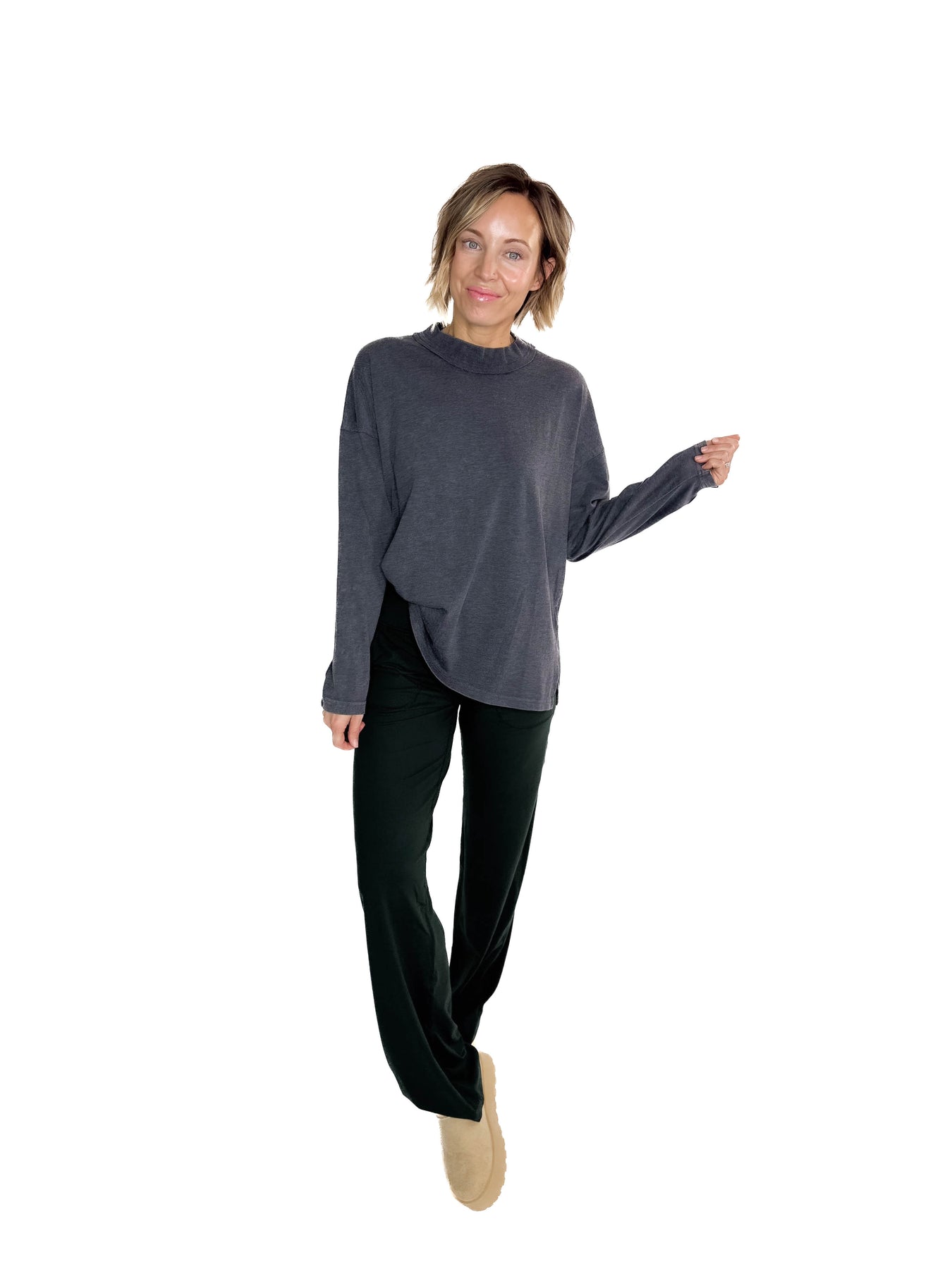 - Mock neckline adds a cozy, elevated touch