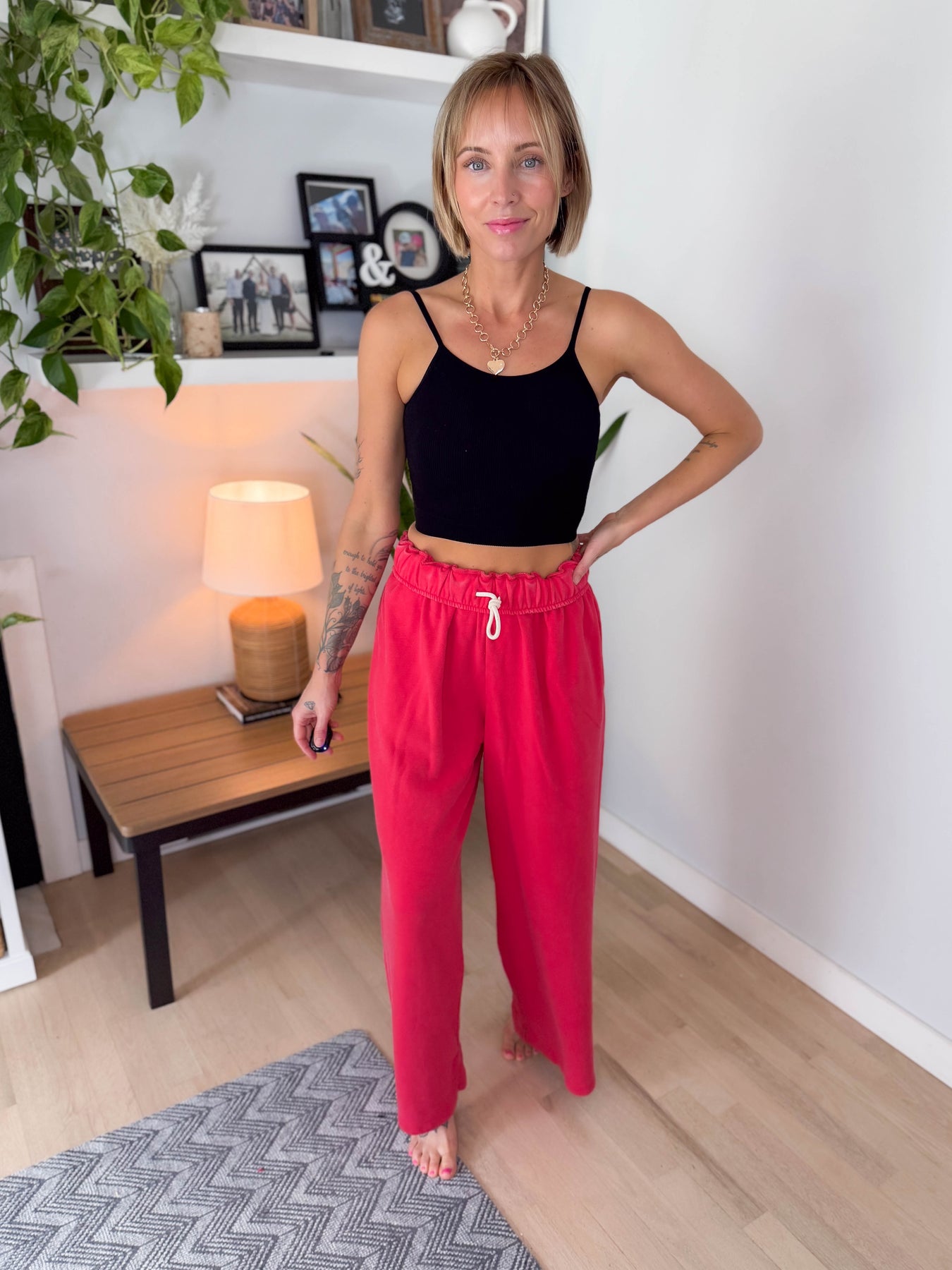 Daydream Foldover Sweatpant- RED