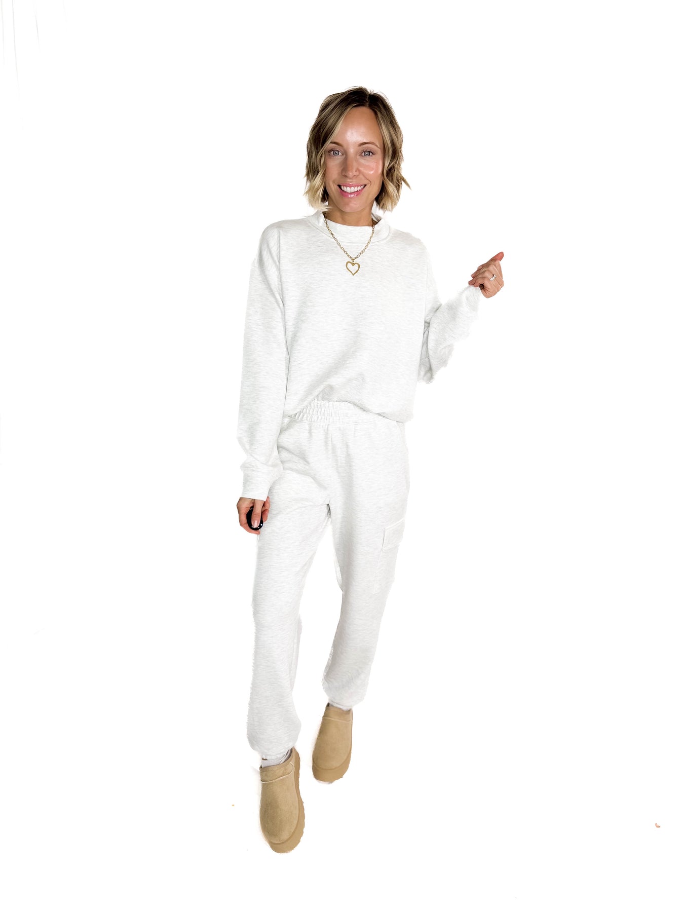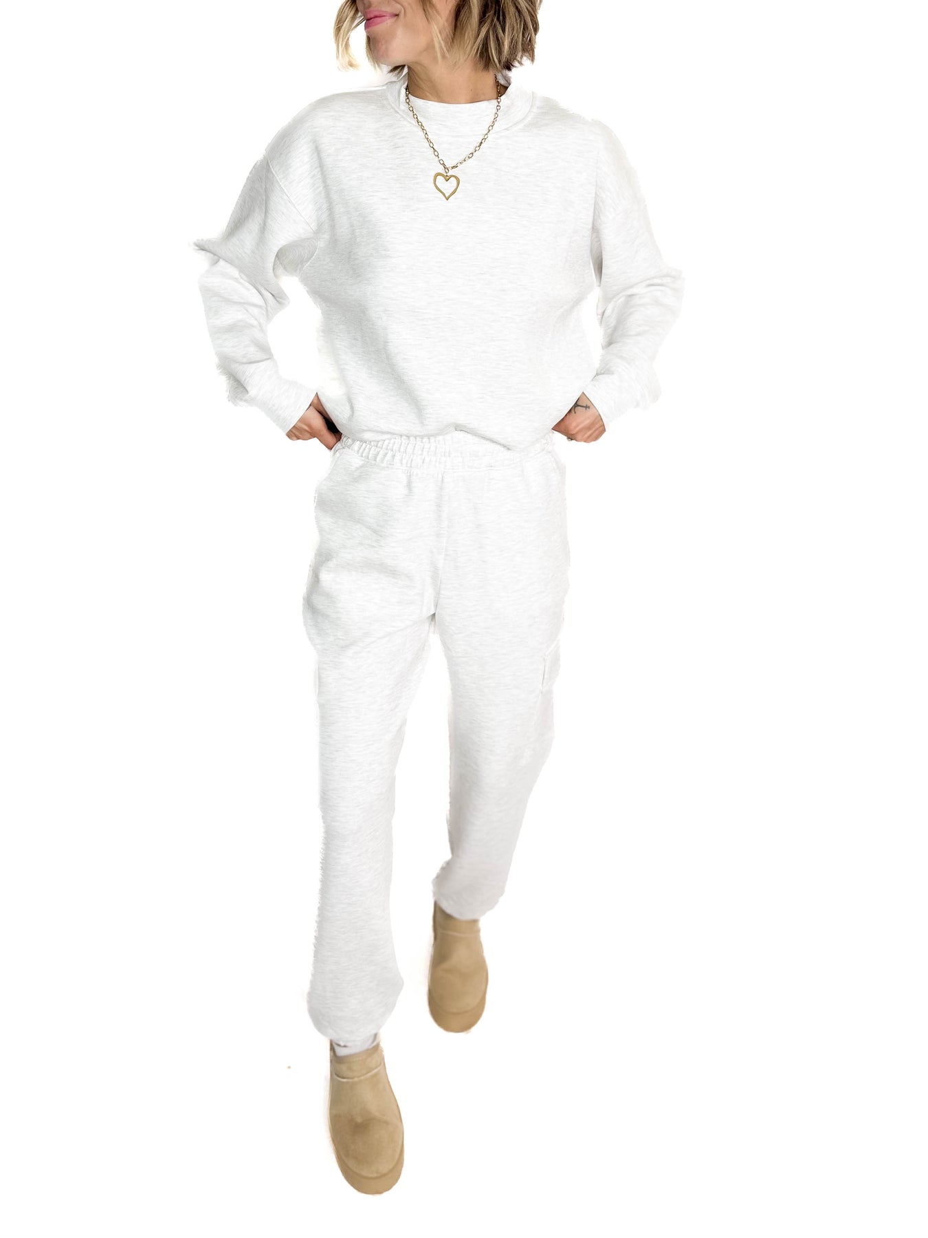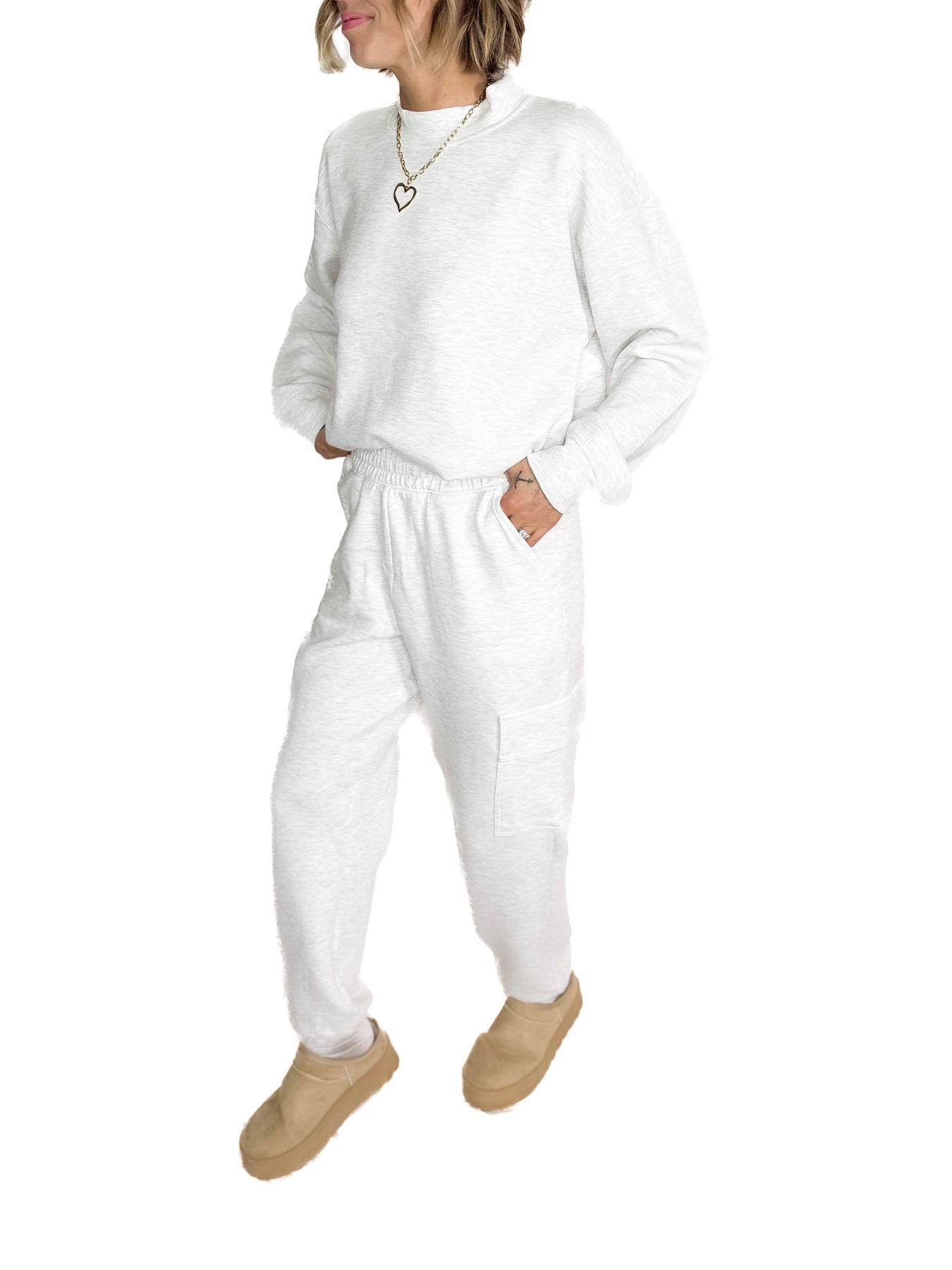 Additional: Elastic waistband with drawstring, side and cargo pockets, elastic cuffs, soft athleisure fabric