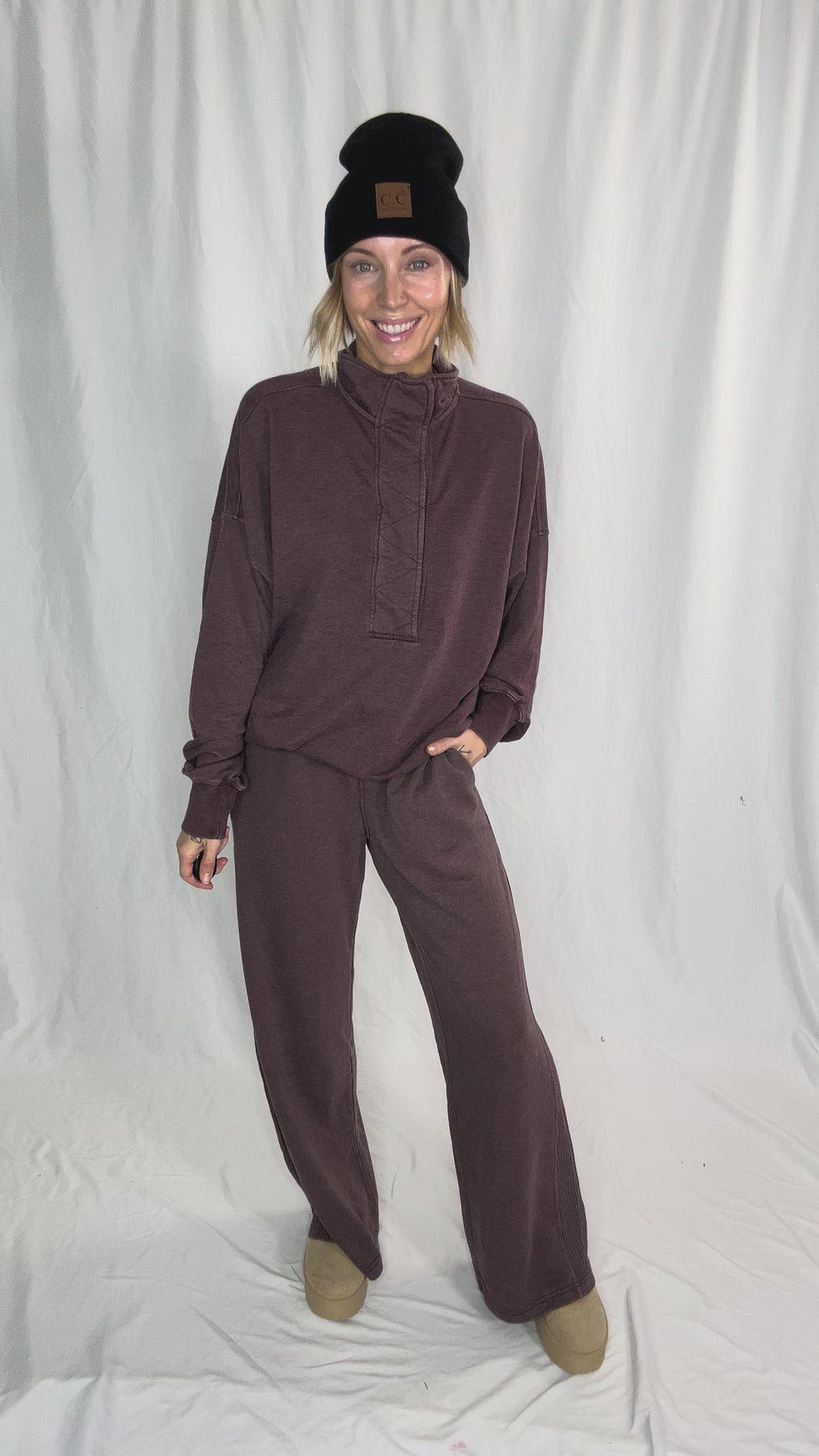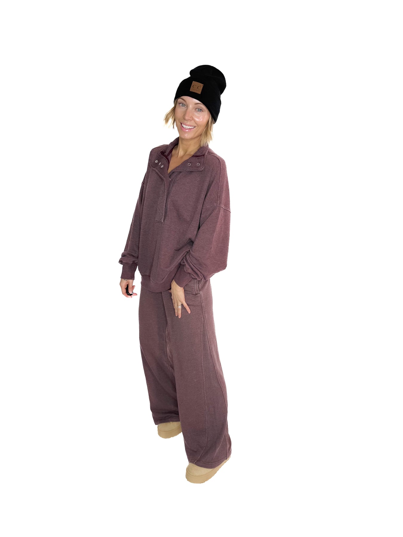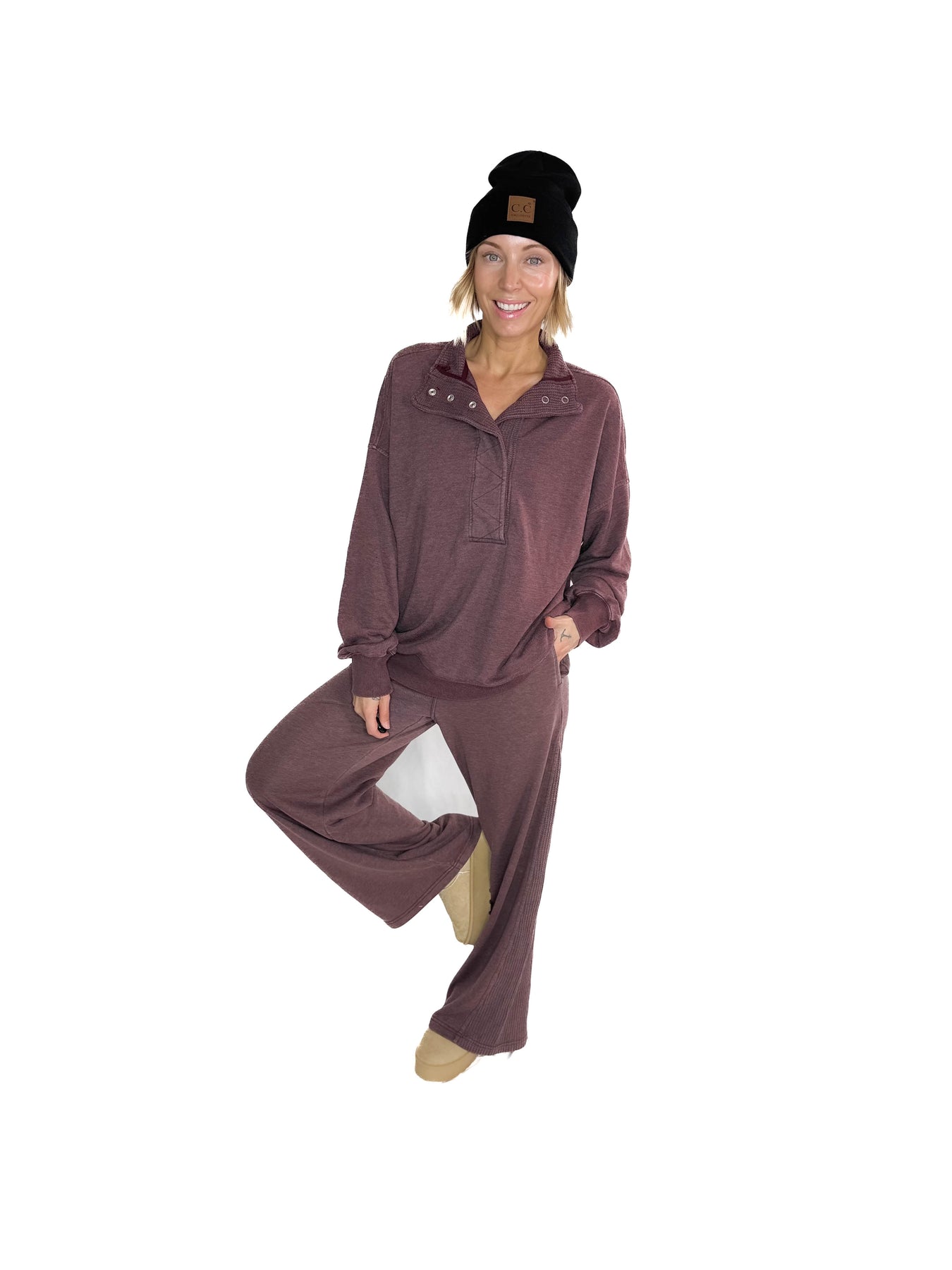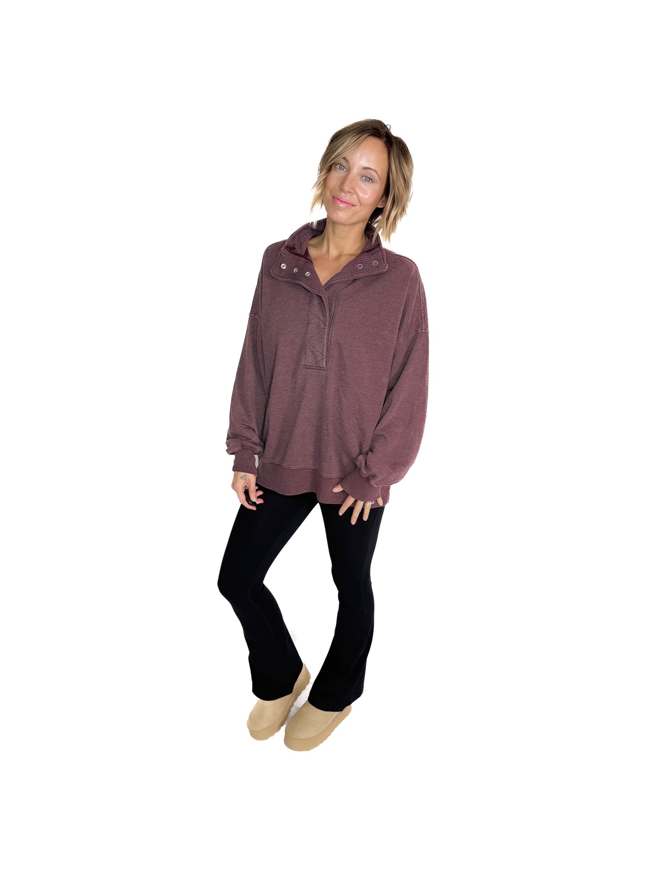 Margot 1/2 Snap Pullover- DARK CHERRY
