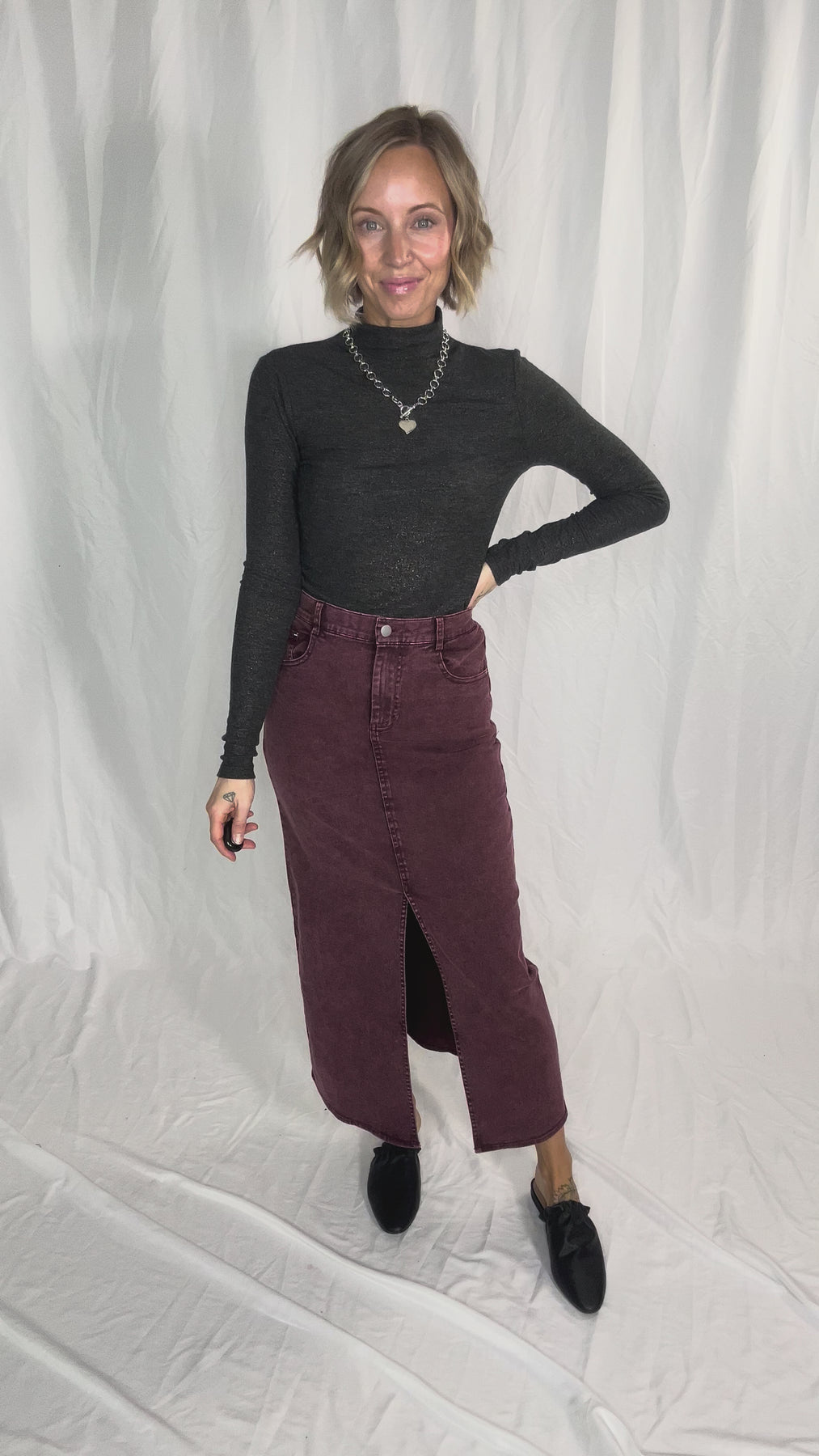 Snow Bound Mock Neck Glitter Long Sleeve- BLACK