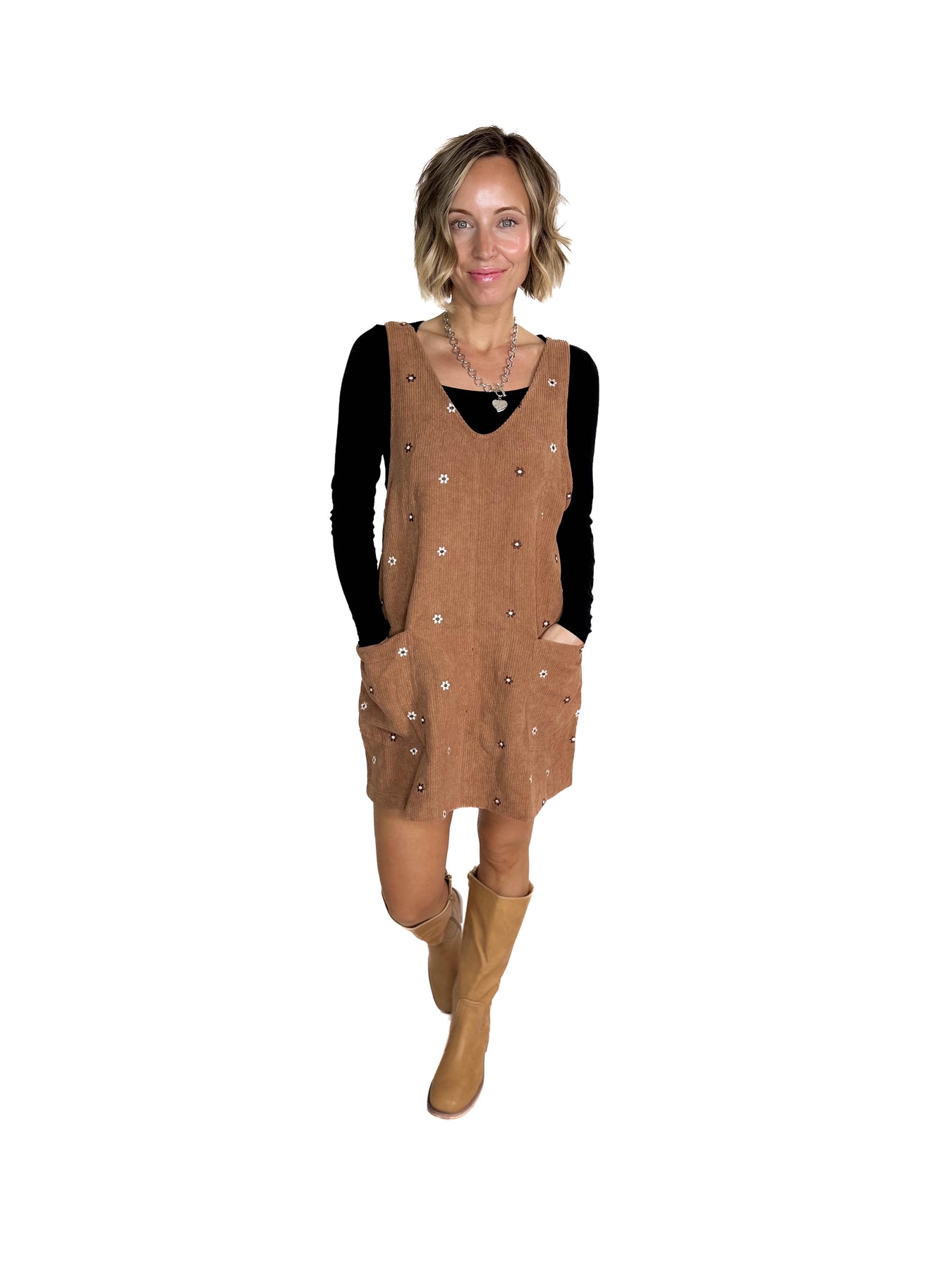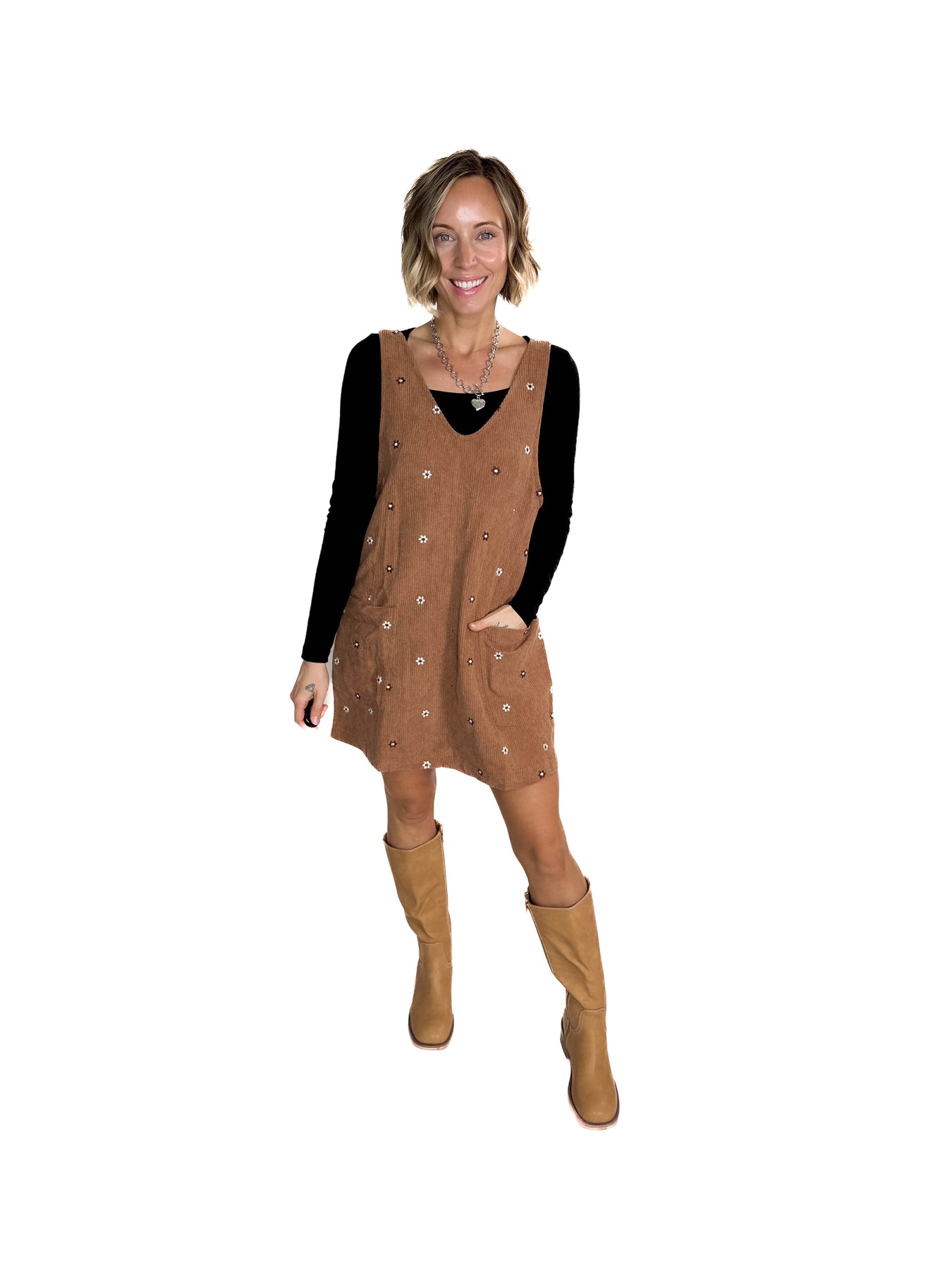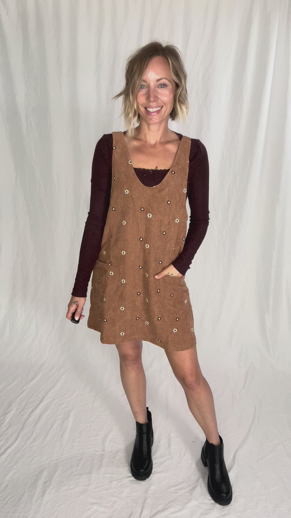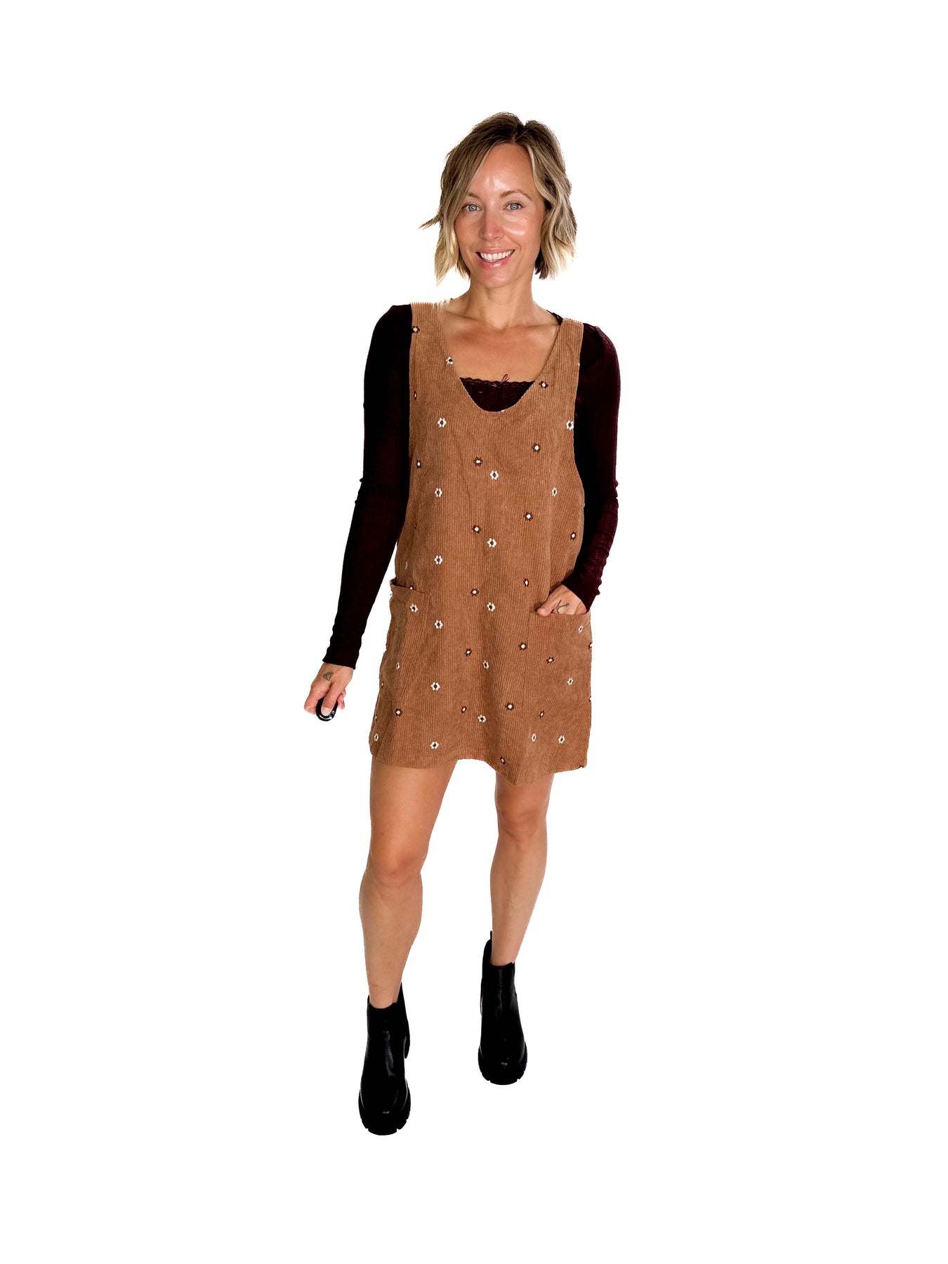 Vintage charm in full bloom — floral embroidered corduroy dress for cozy-chic style